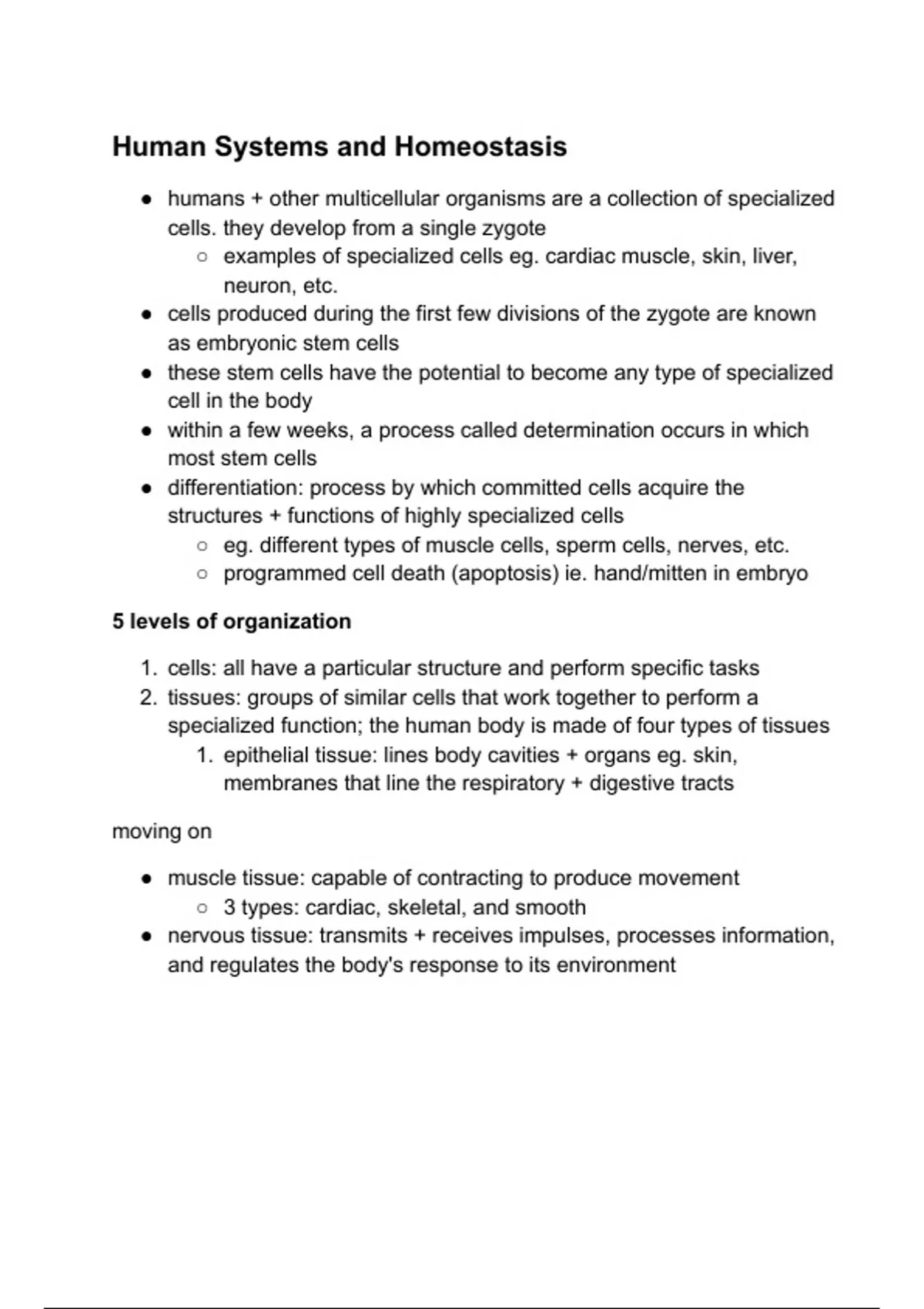 Biology - Human Systems and Homeostasis