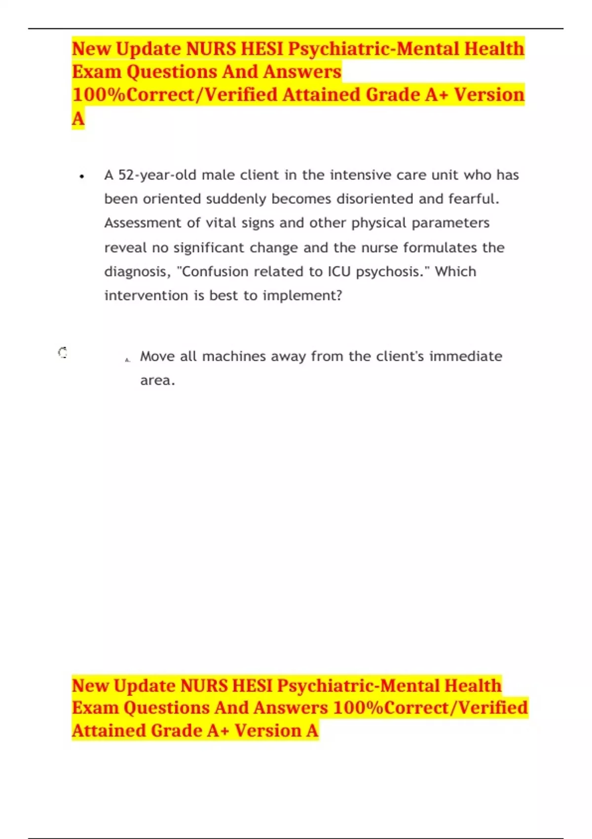 New Update NURS HESI Psychiatric-Mental Health Exam Questions And Answers 100%Correct/Verified Attained Grade A+ Version A