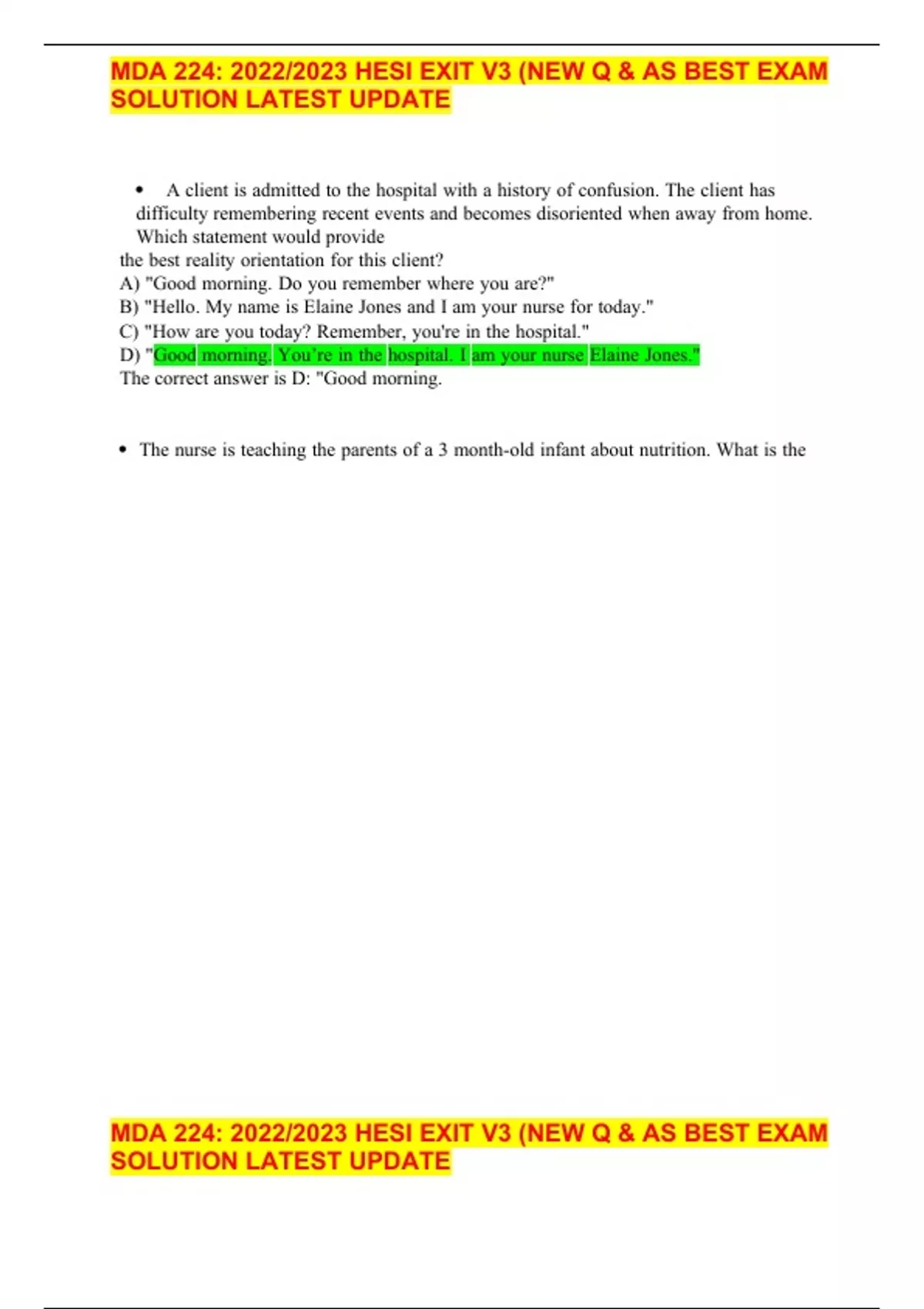 MDA 224: 2022/2023 HESI EXIT V3 (NEW Q & AS BEST EXAM SOLUTION LATEST UPDATE