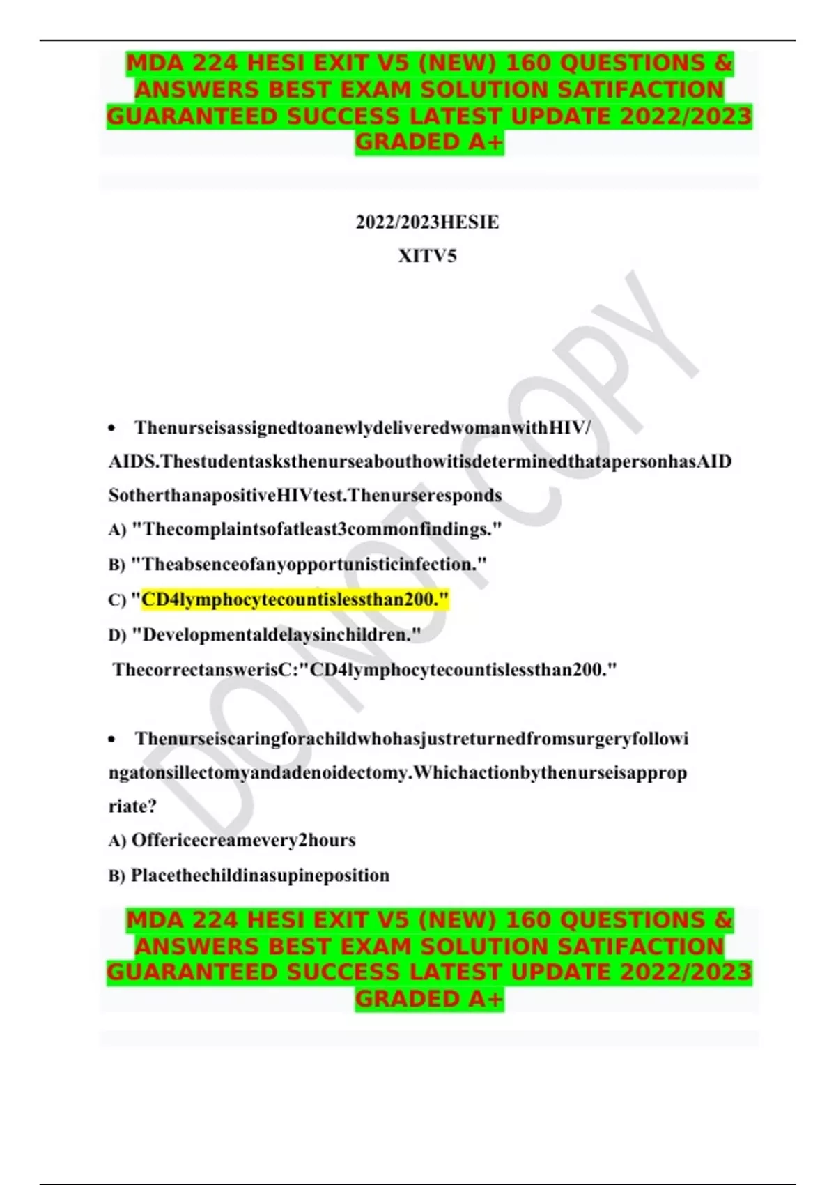 MDA 224 HESI EXIT V5 (NEW) 160 QUESTIONS & ANSWERS BEST EXAM SOLUTION SATIFACTION GUARANTEED SUCCESS LATEST UPDATE 2022/2023 GRADED A+
