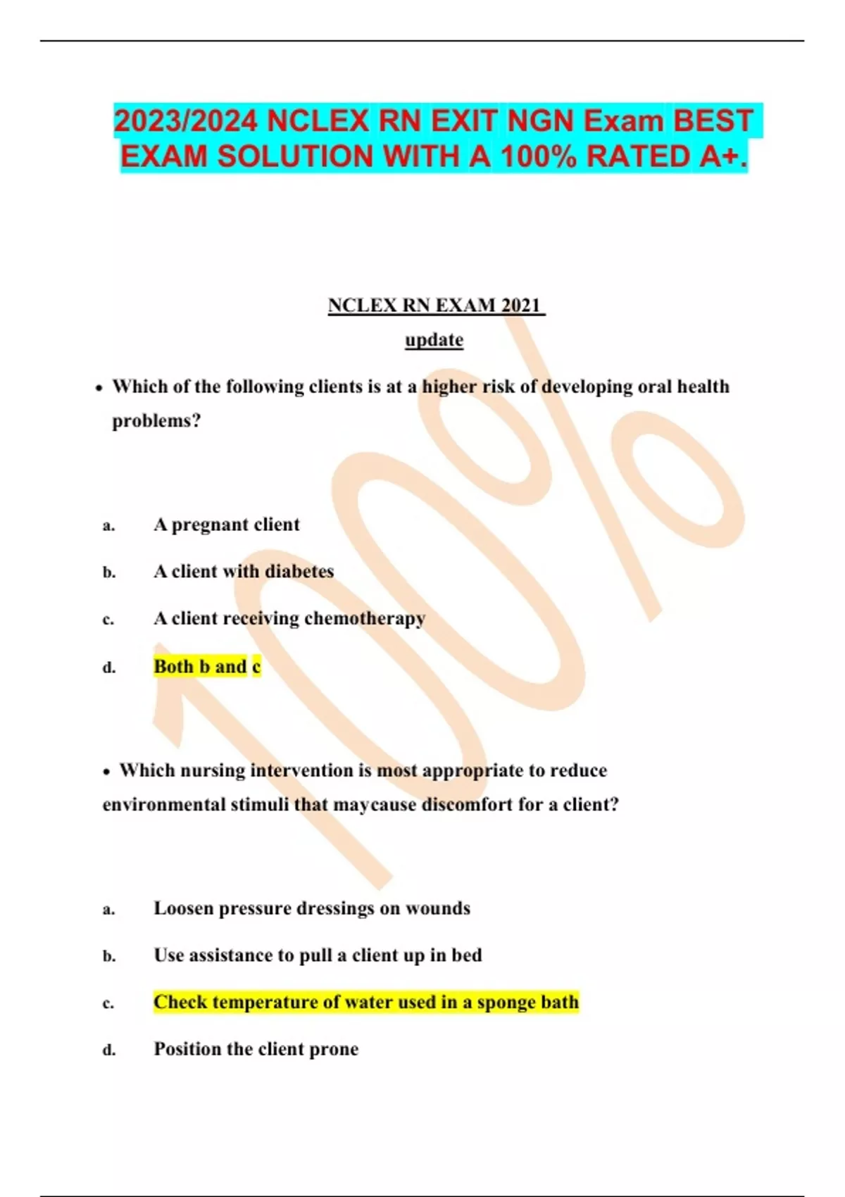 EXAM SOLUTION WITH A 100% RATED A+.