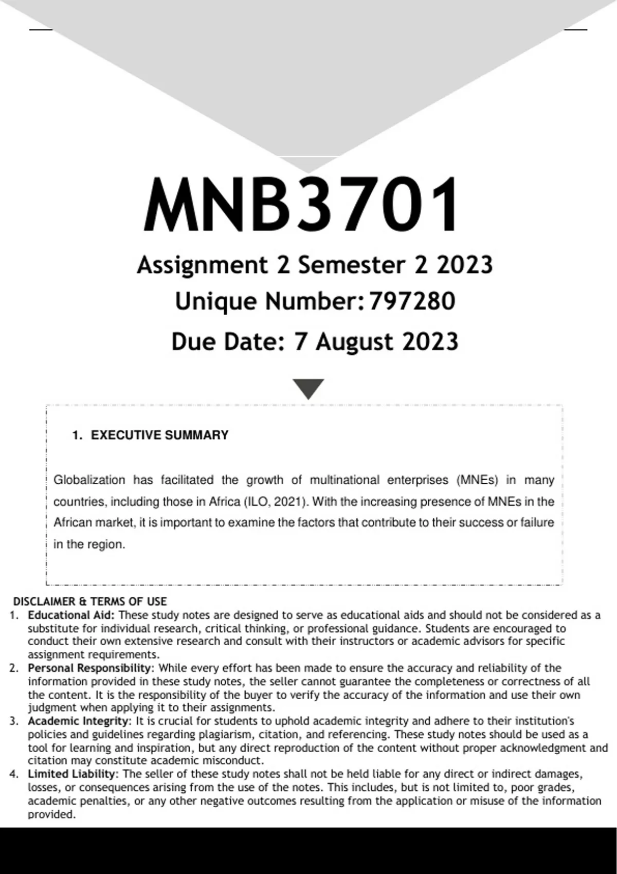 Well-structured MNB3701 Assignment 2 (ANSWERS) Semester 1 2024 (709192)- DISTINCTION GUARANTEED.. (DETAILED ANSWERS - DISTINCTION GUARANTEED!).