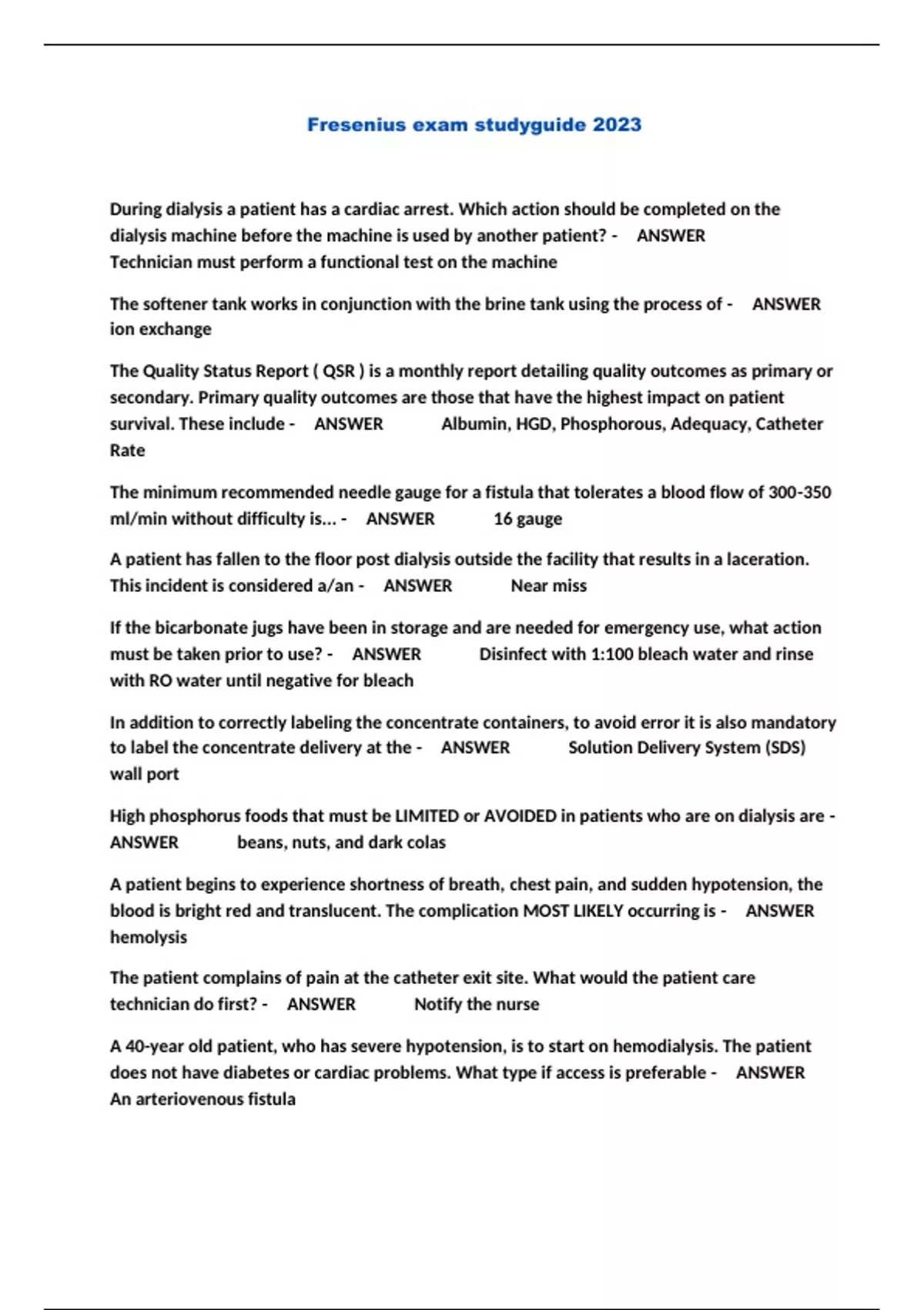 FRESENIUS PACKAGED EXAMS LATEST UPDATE