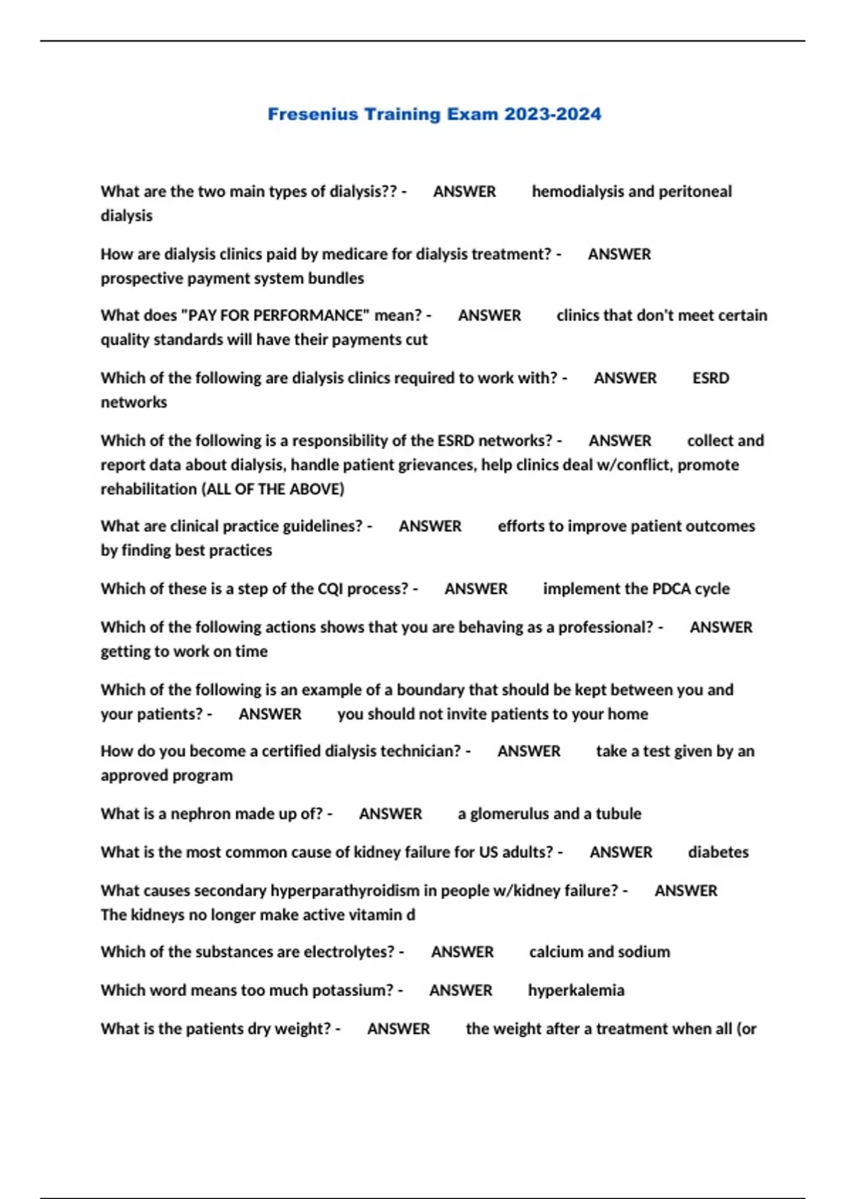 Fresenius Training Exam ..