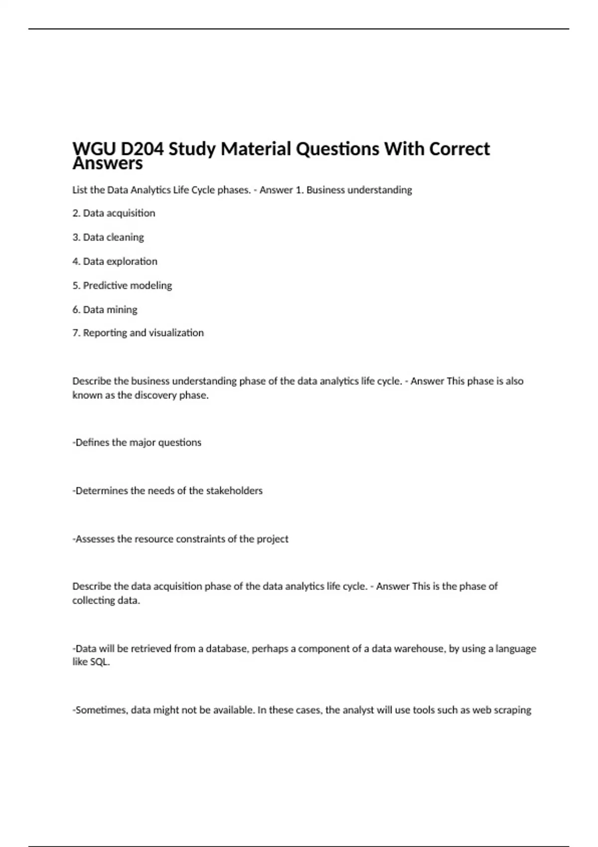 WGU D204 Study Material Questions With Correct Answers