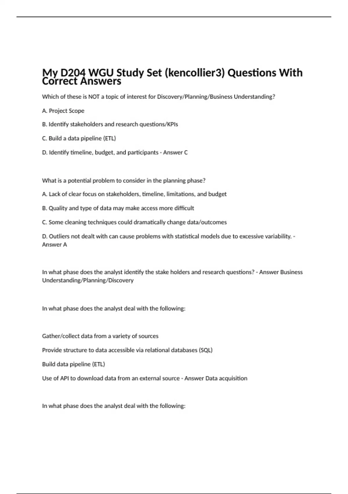 My D204 WGU Study Set (kencollier3) Questions With Correct Answers