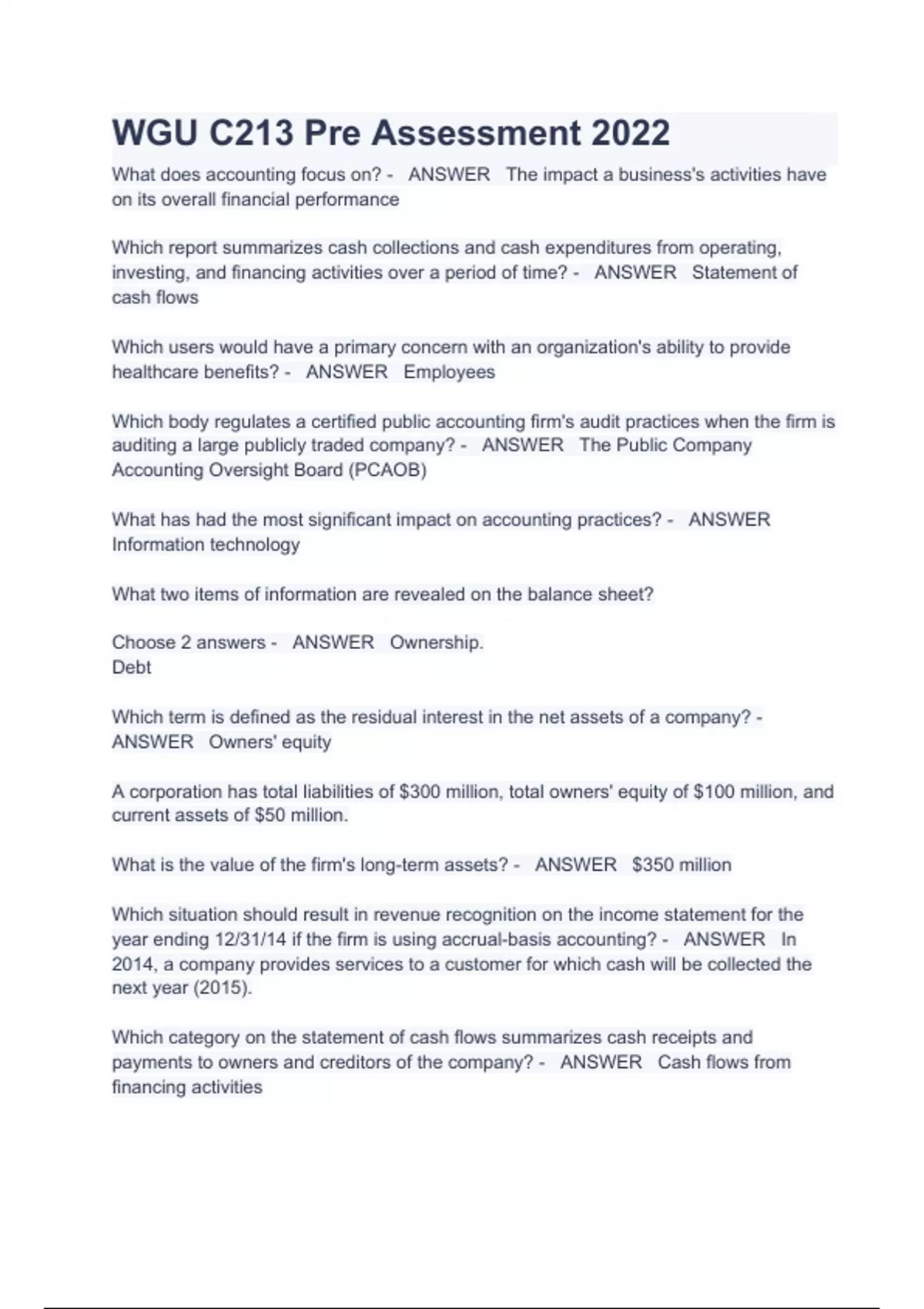 WGU C213 Pre Assessment 2022 QUESTIONS & ANSWERS (100 % VERIFIED & CORRECT SOLUTIONS)LATEST UPDATED 2023
