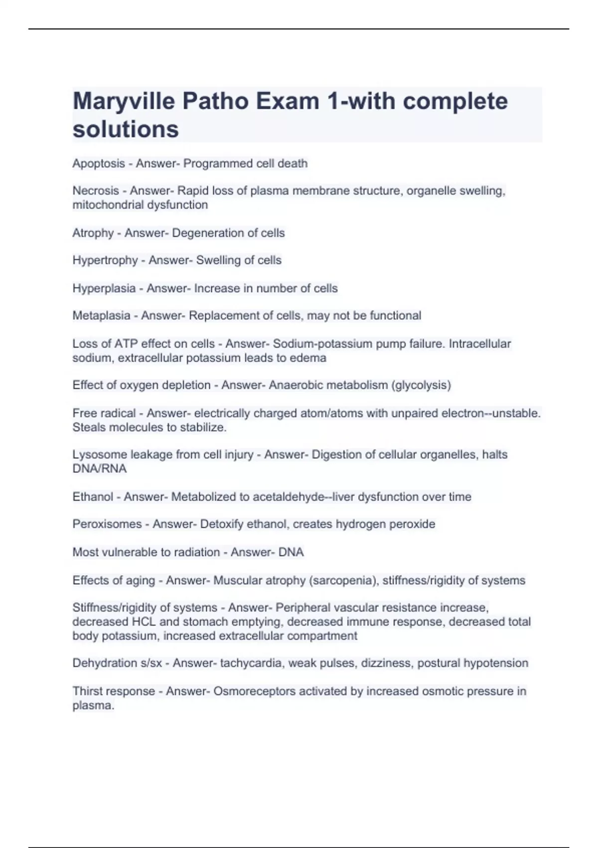 maryville patho exam 1 with complete solutions