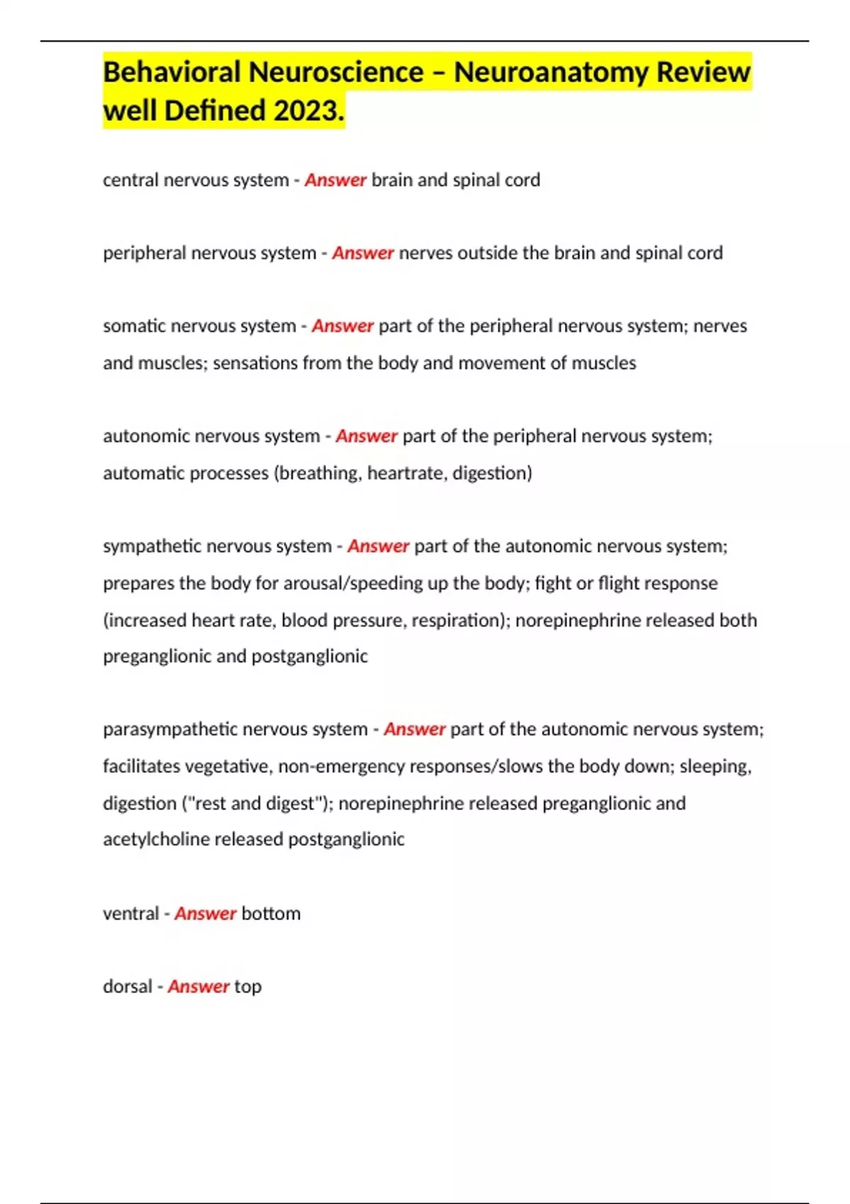 Behavioral Neuroscience – Neuroanatomy Review