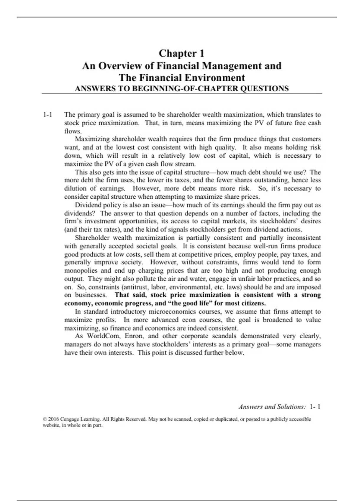 1-1 The primary goal is assumed to be shareholder wealth maximization, which translates to