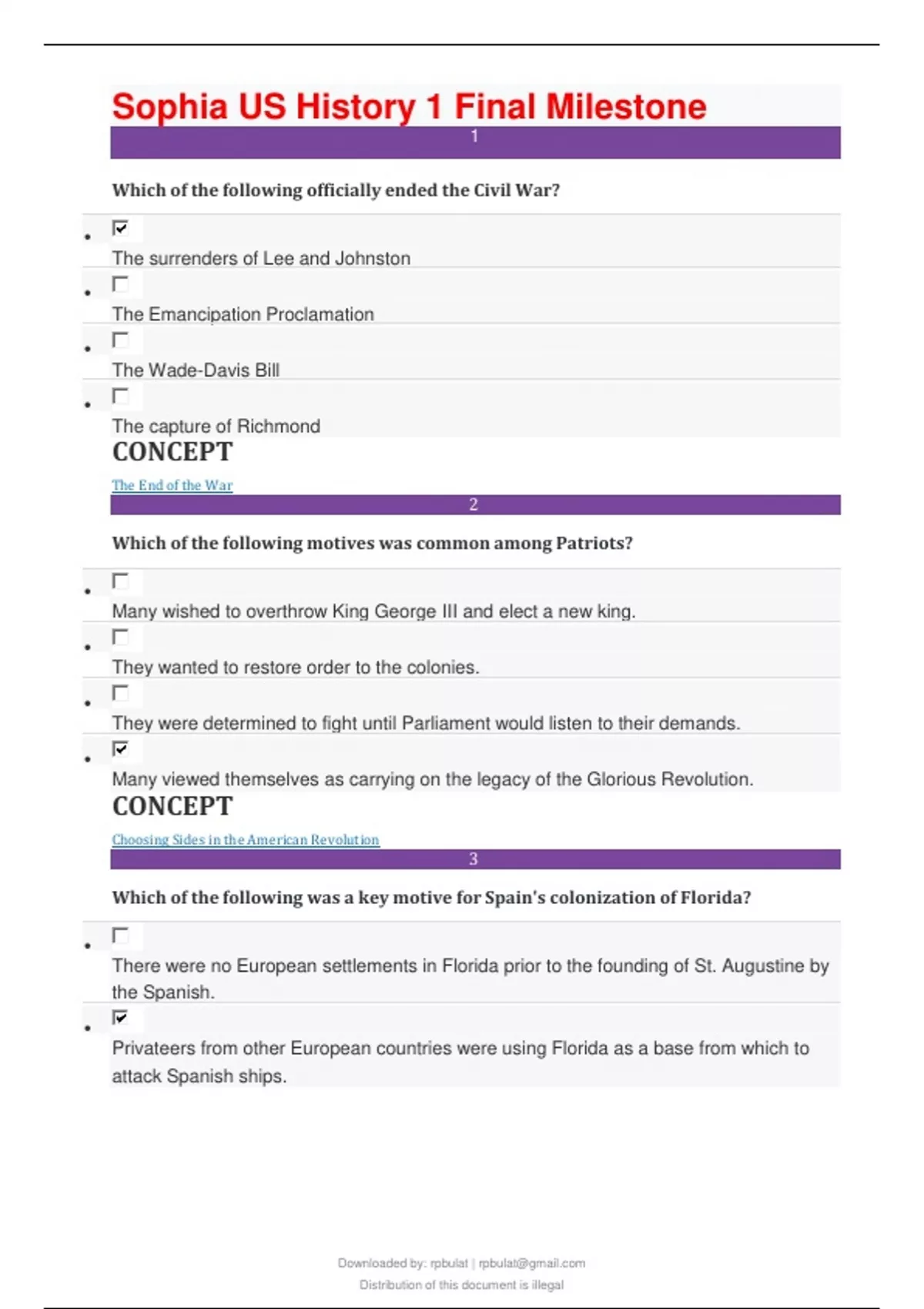 Sophia US History 1 Final Milestone Sophia US History 1 Final Milestone Sophia US History 1 Final Milestone