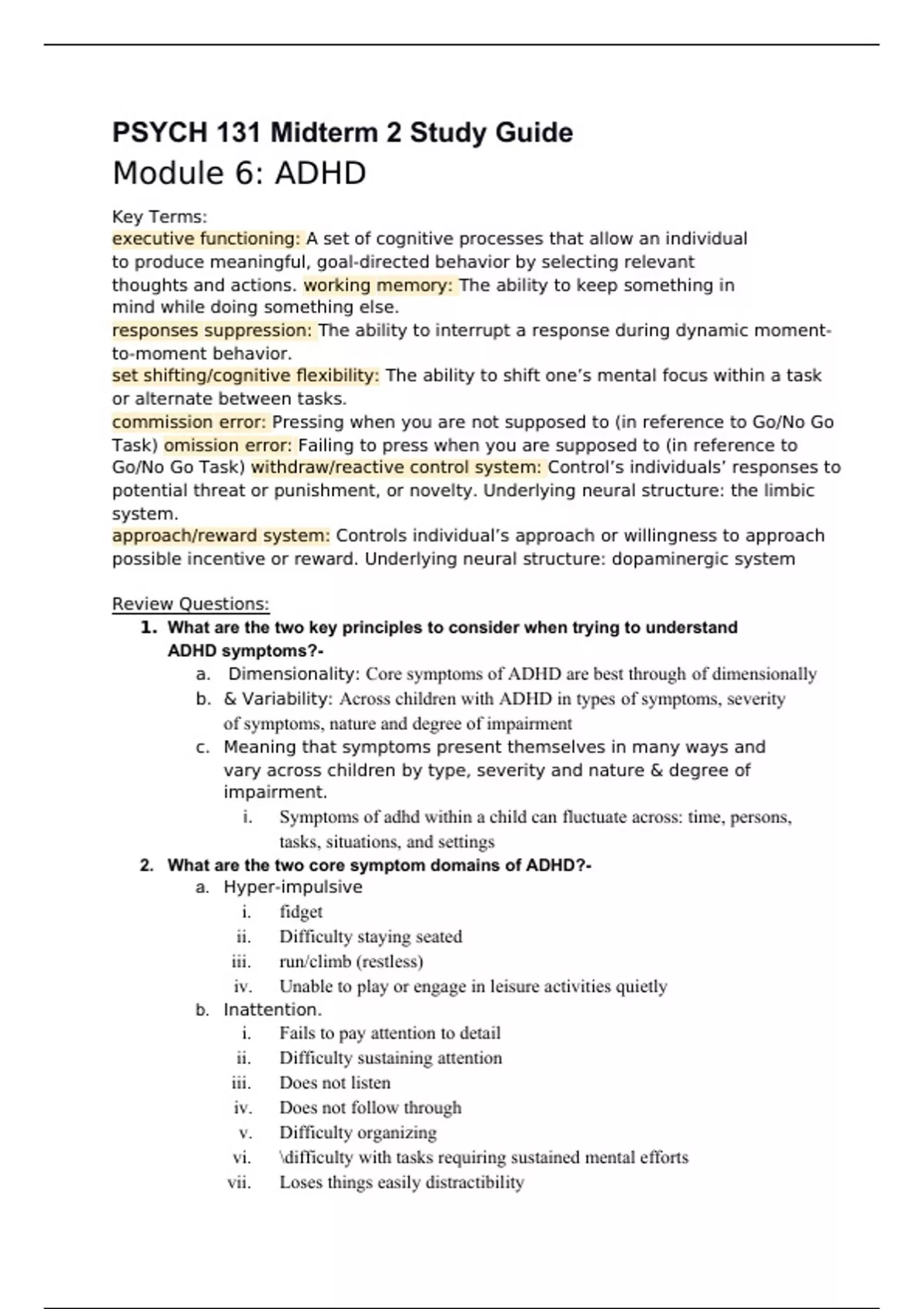 PSYCH 131 Midterm 2 Study Guide