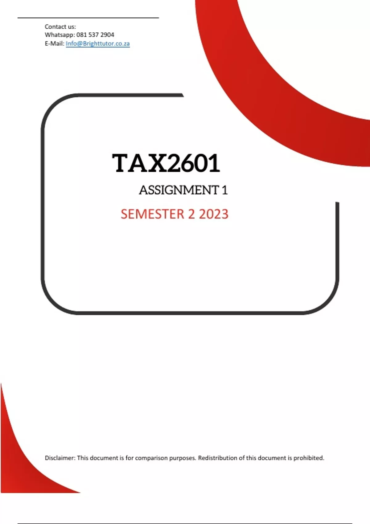 This document contains TAX2601 ASSIGNMENT 1 questions and trusted answers.