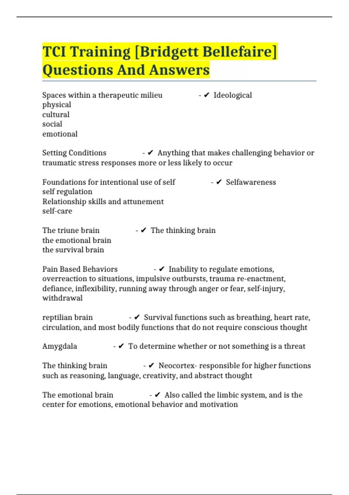 TCI Training [Bridgett Bellefaire] Questions And Answers