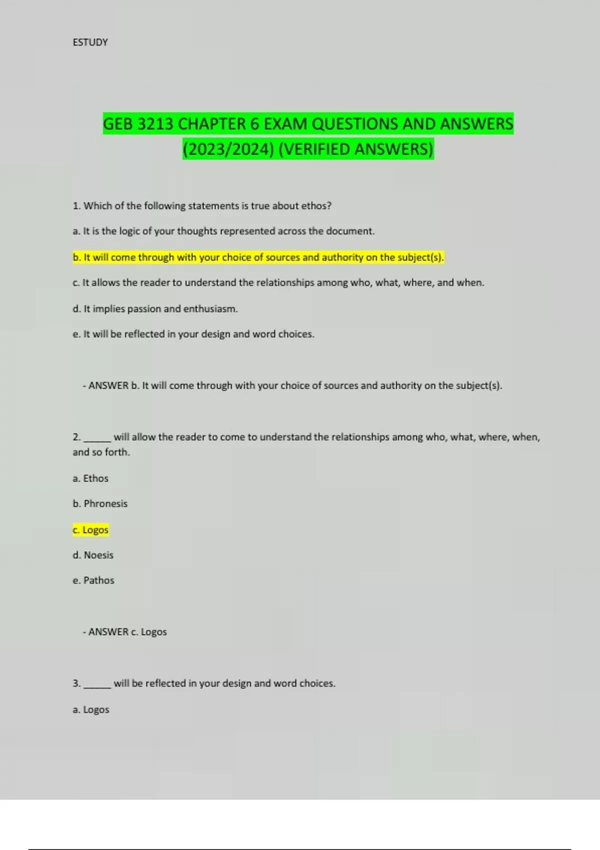 GEB 3213 CHAPTER 6 EXAM QUESTIONS AND ANSWERS (2023/2024) (VERIFIED ANSWERS)