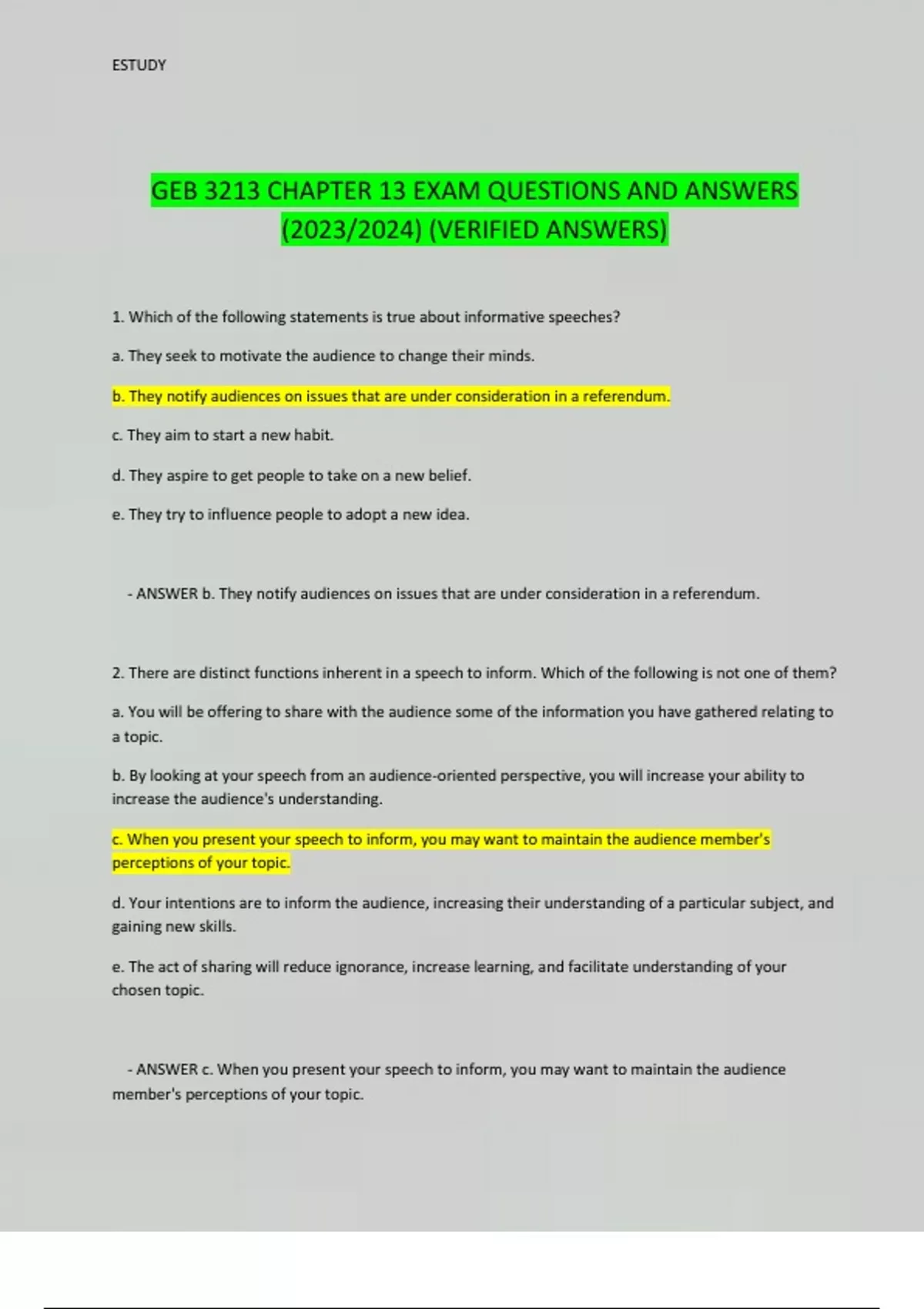 GEB 3213 CHAPTER 13 EXAM QUESTIONS AND ANSWERS (2023/2024) (VERIFIED ANSWERS)
