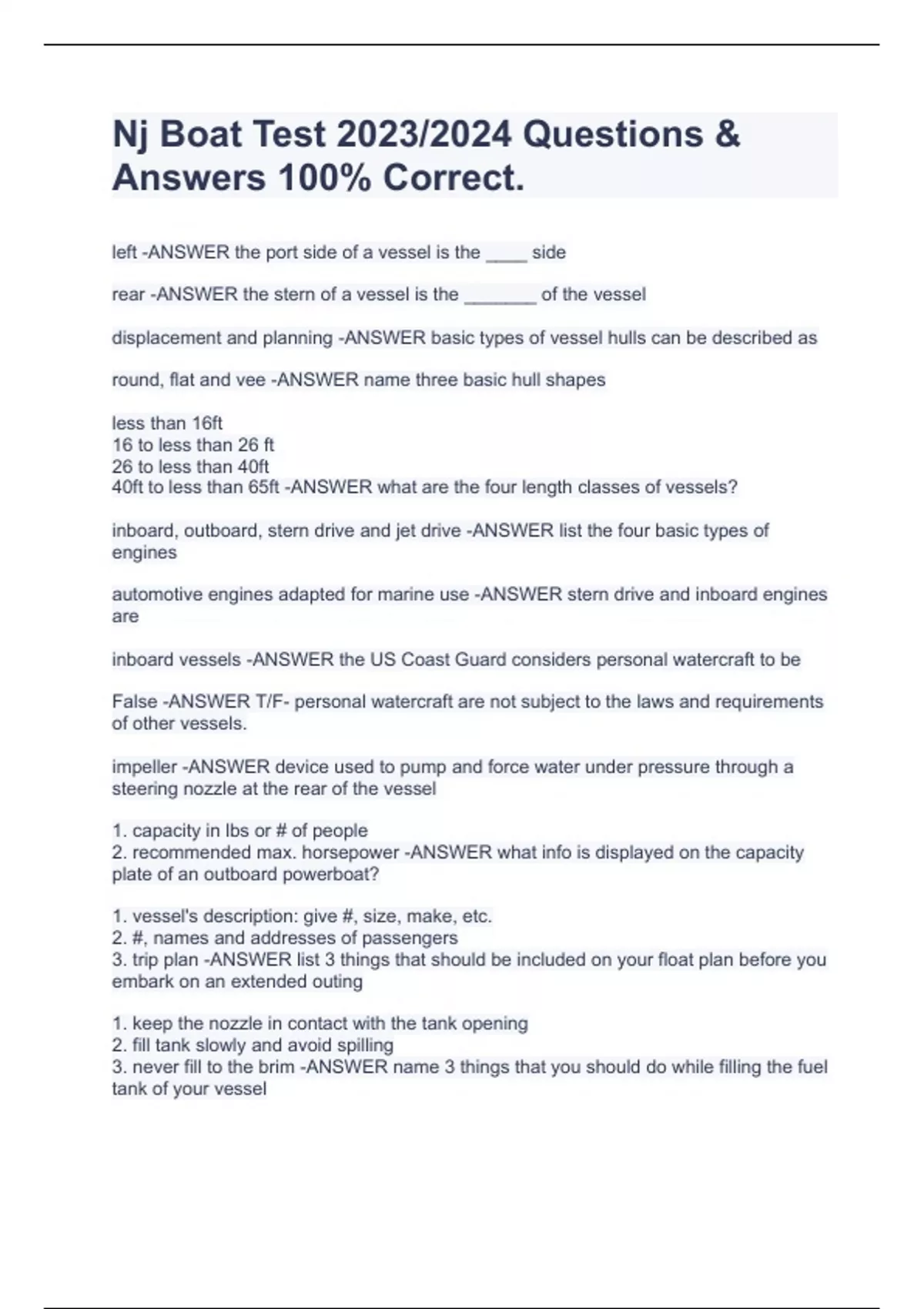 Nj Boat Test 2023/2024 Questions & Answers 100% Correct.
