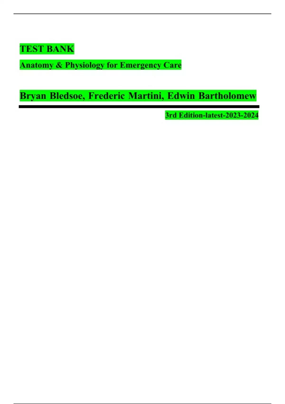 TEST BANK Anatomy & Physiology for Emergency Care Bryan Bledsoe, Frederic Martini, Edwin Bartholomew 3rd Edition-latest-