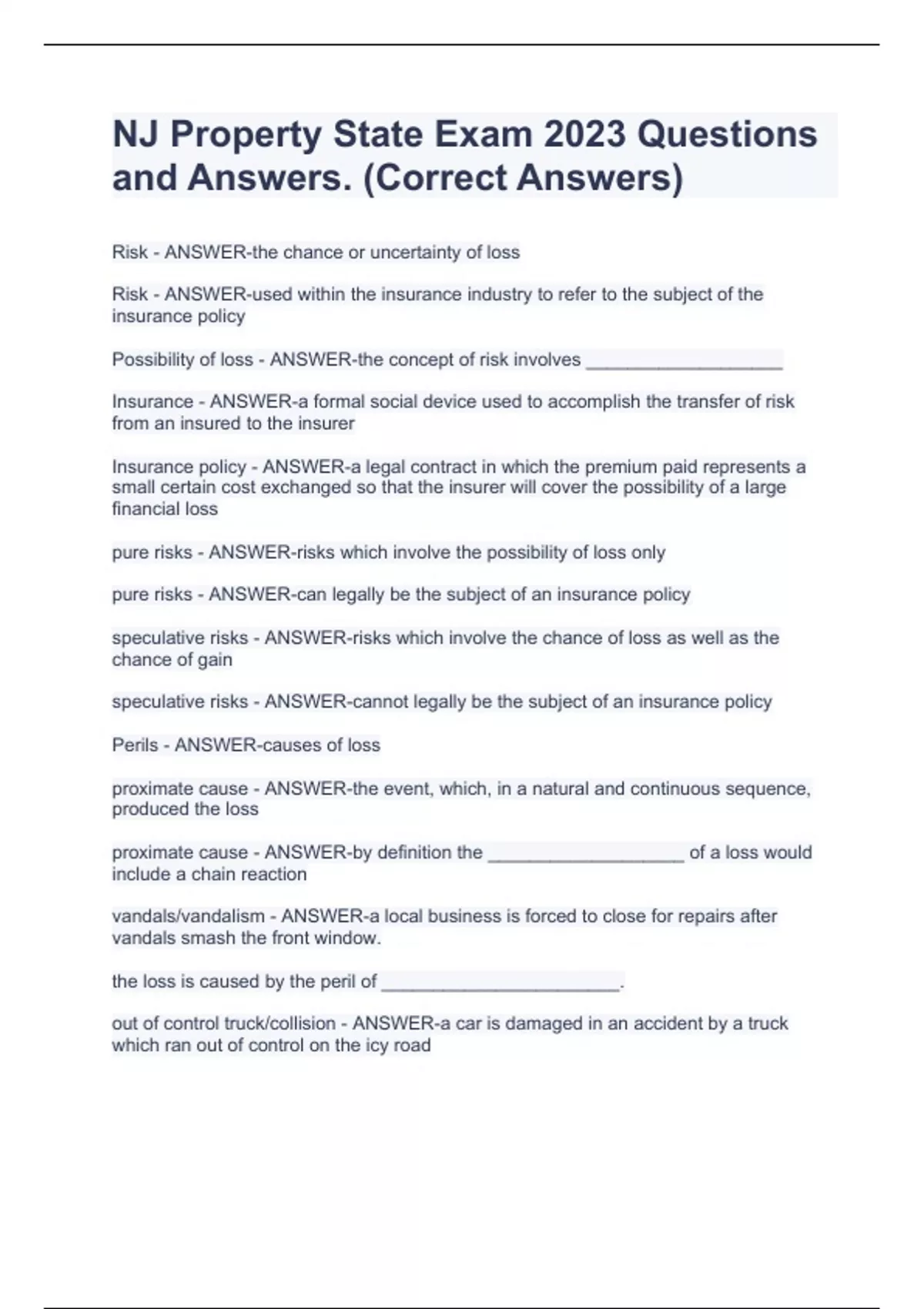 NJ Property State Exam 2023 Questions and Answers. (Correct Answers)