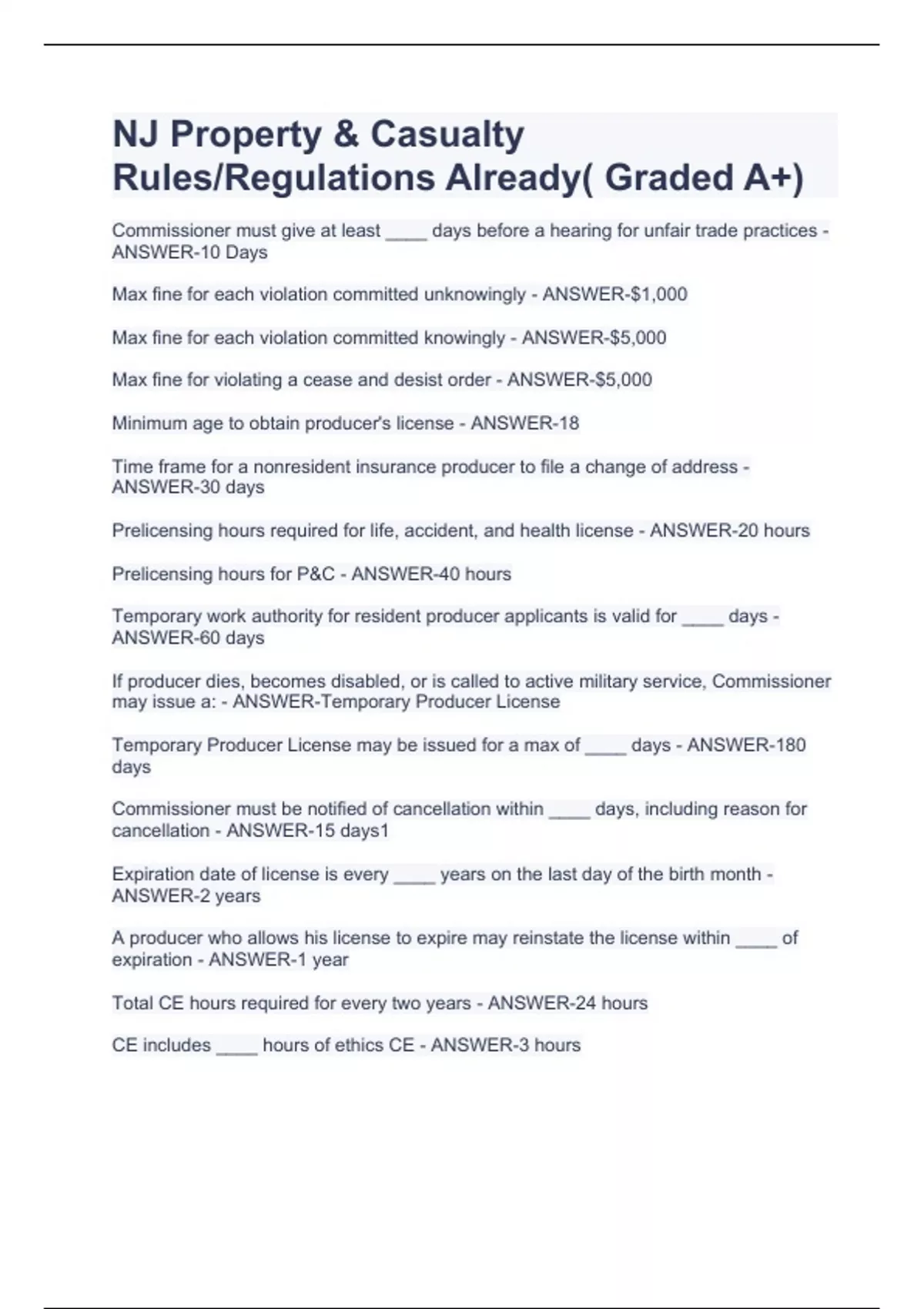 Prelicensing hours for P&C - ANSWER-40 hours
