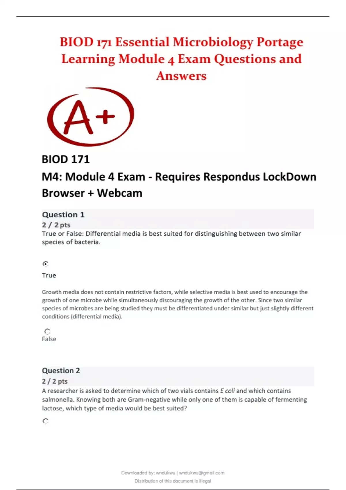 BIOD 171 Essential Microbiology Portage Learning Module 4 Exam Questions and Answers