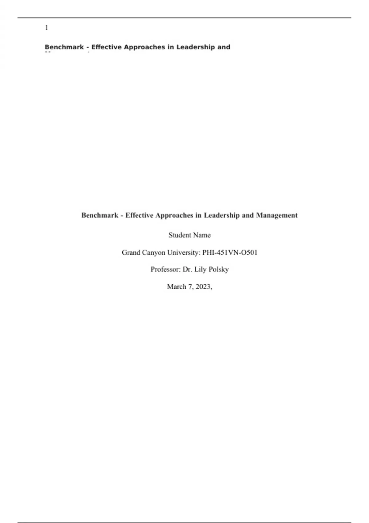 NRS 451VN Topic 2 Assignment Benchmark - Effective Approaches in Leadership and Management - Nurse Staffing Proportion