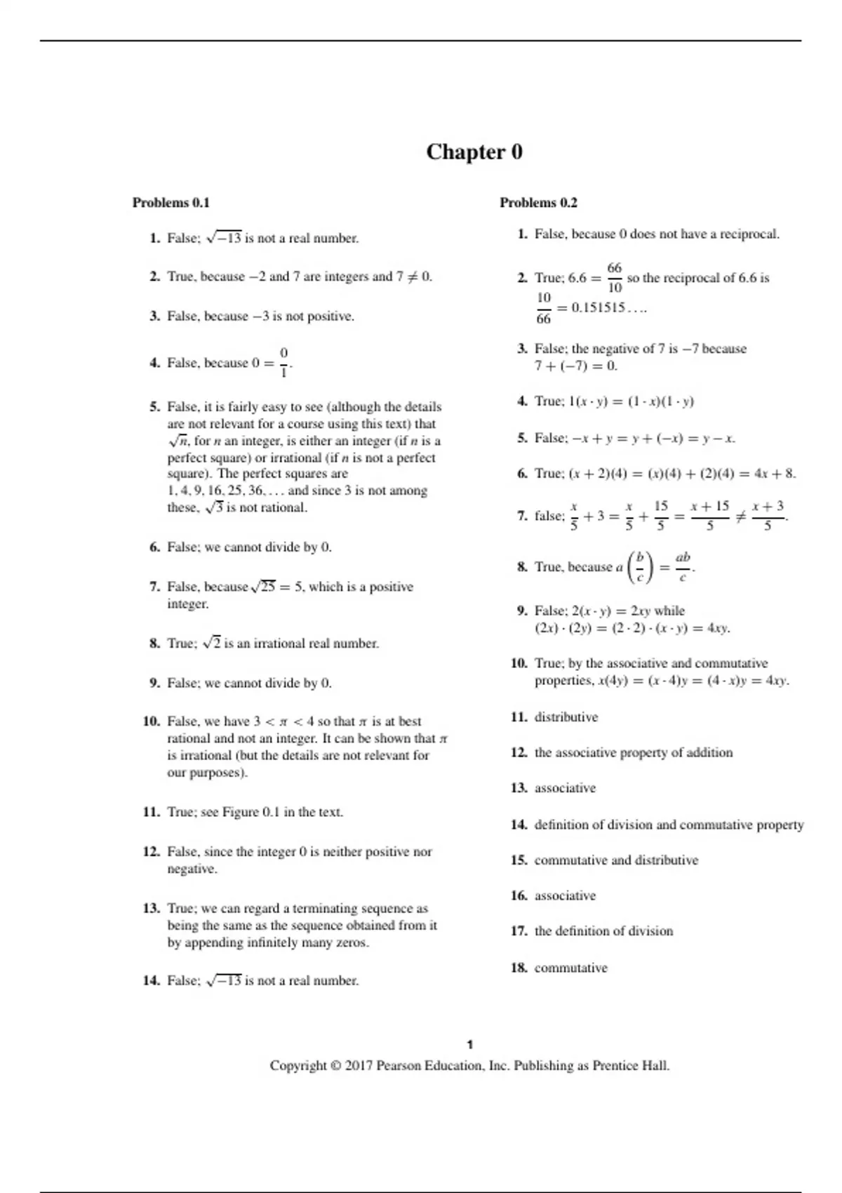 1. False; 13 is not a real number. 1. False, because 0 does not have a reciprocal.