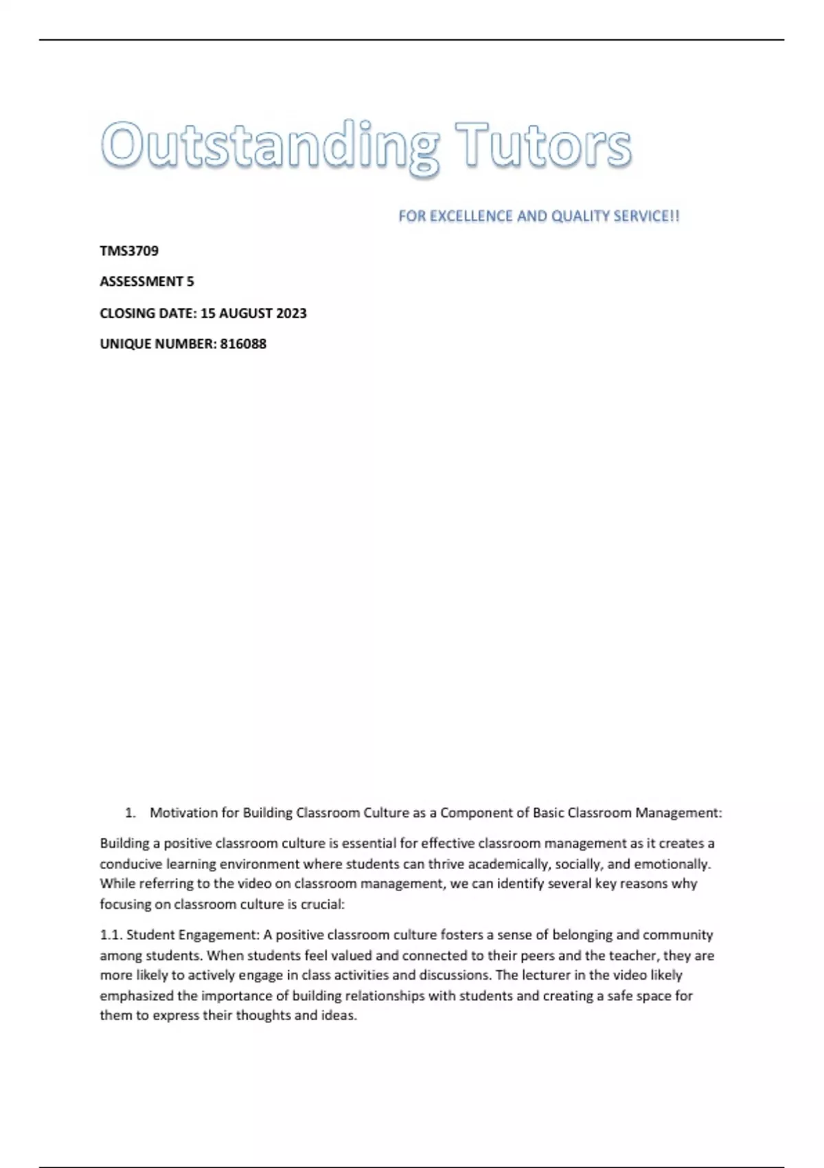 This document contains the solution for TMS3709 assessment 5, using this document will ensure that you get 90% + to 99%.