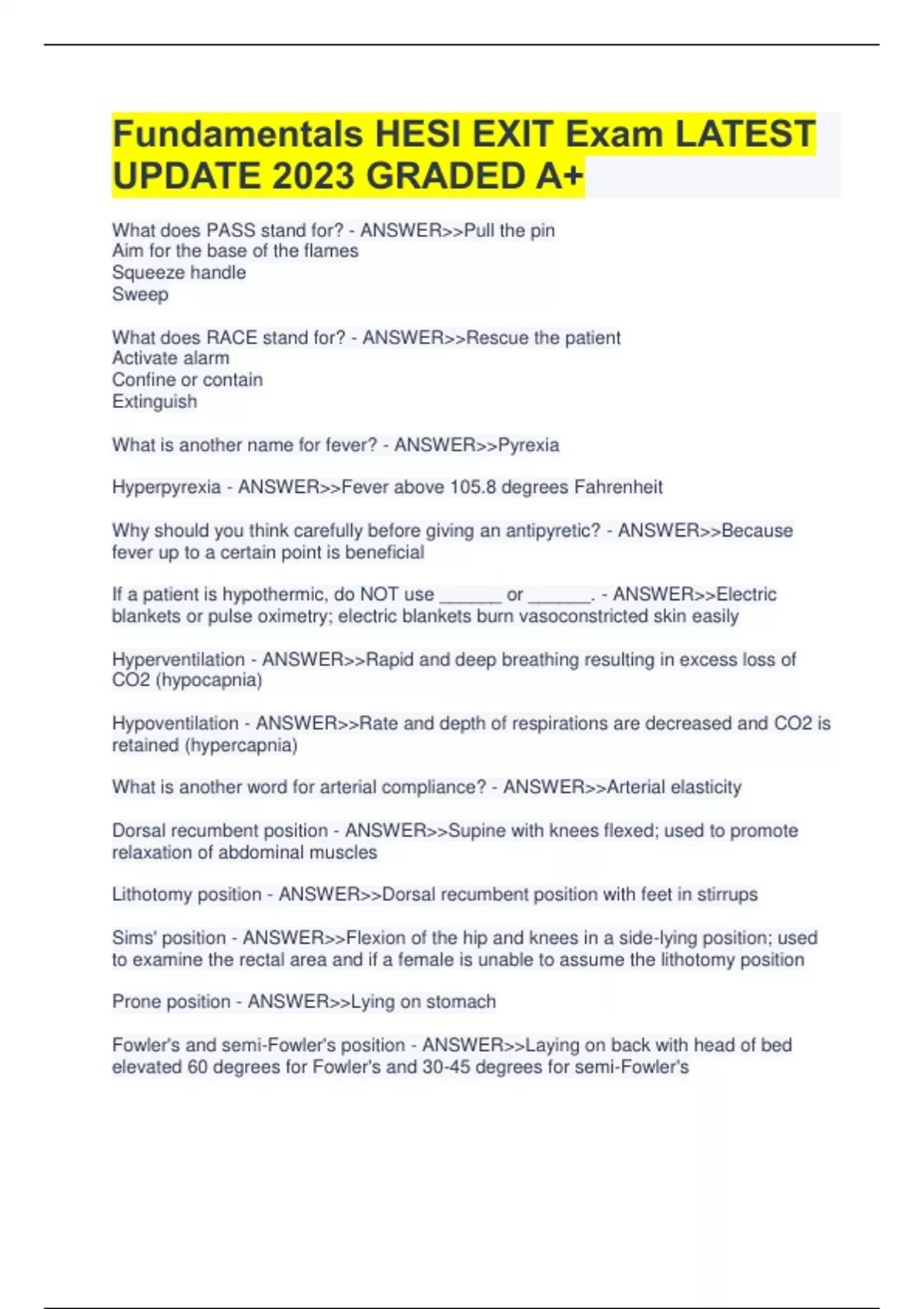 fundamentals hesi exit exam latest update