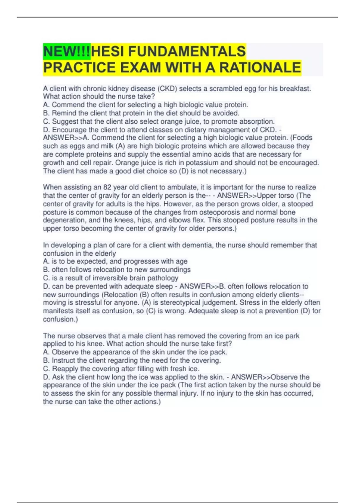 NEW!!!HESI FUNDAMENTALS PRACTICE EXAM WITH A RATIONALE