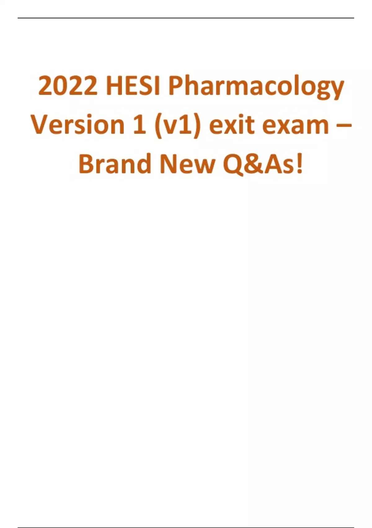 HESI Pharmacology Exit Exam Version 1 (V1) – 2022 Edition | Brand New Questions and Answers