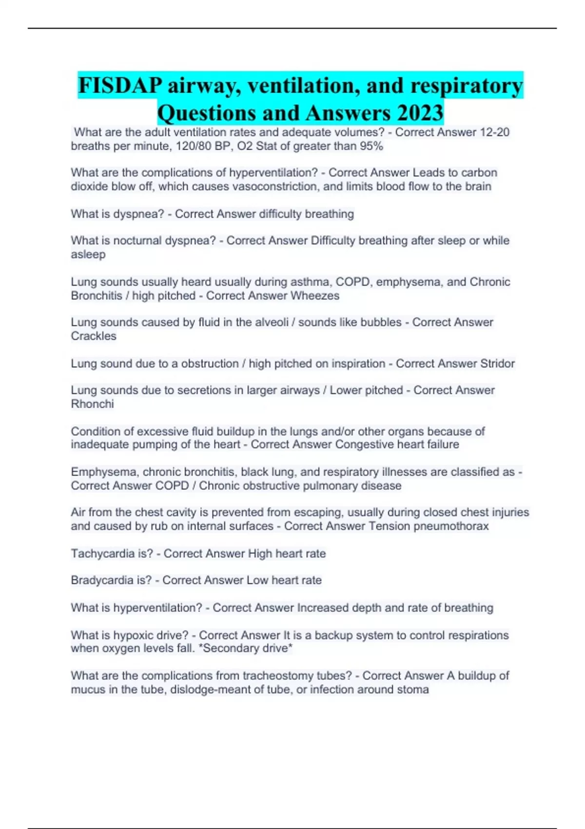 FISDAP airway, ventilation, and respiratory Questions and Answers 2023