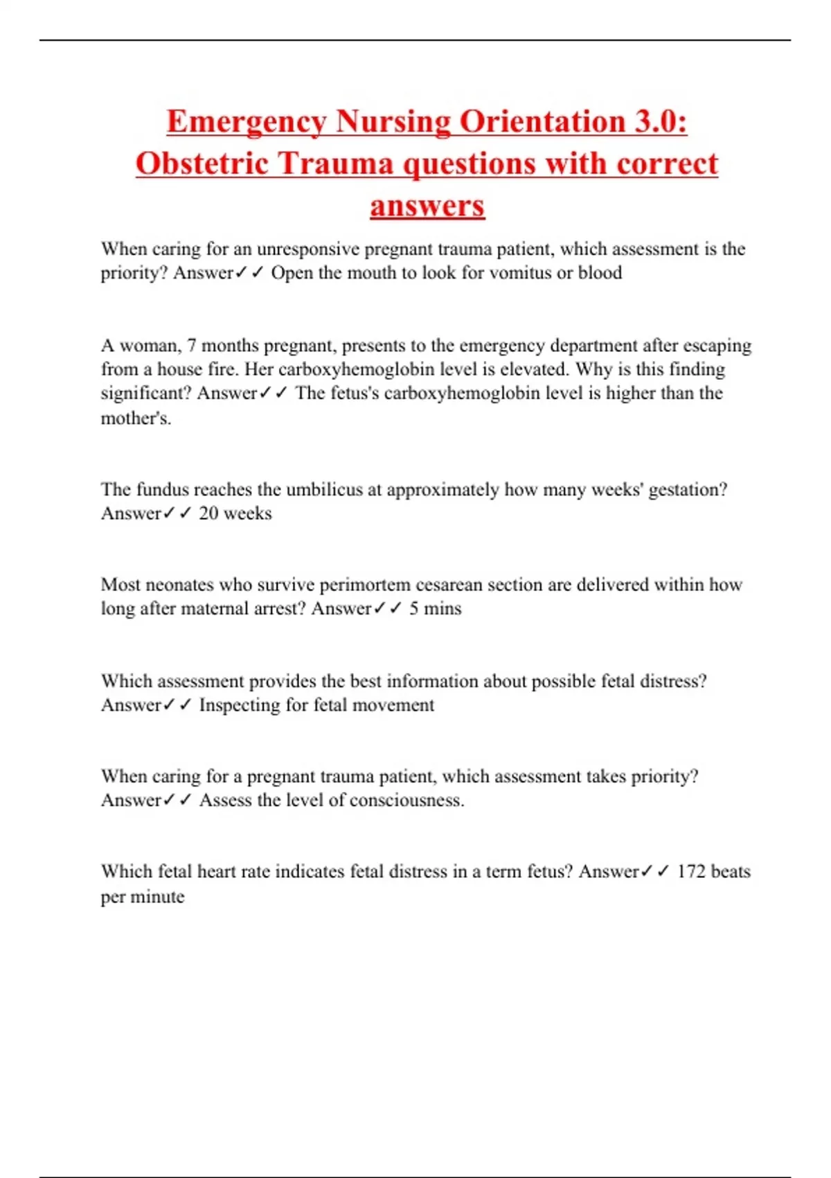 Emergency Nursing Orientation 3.0: Obstetric Trauma questions with correct answers