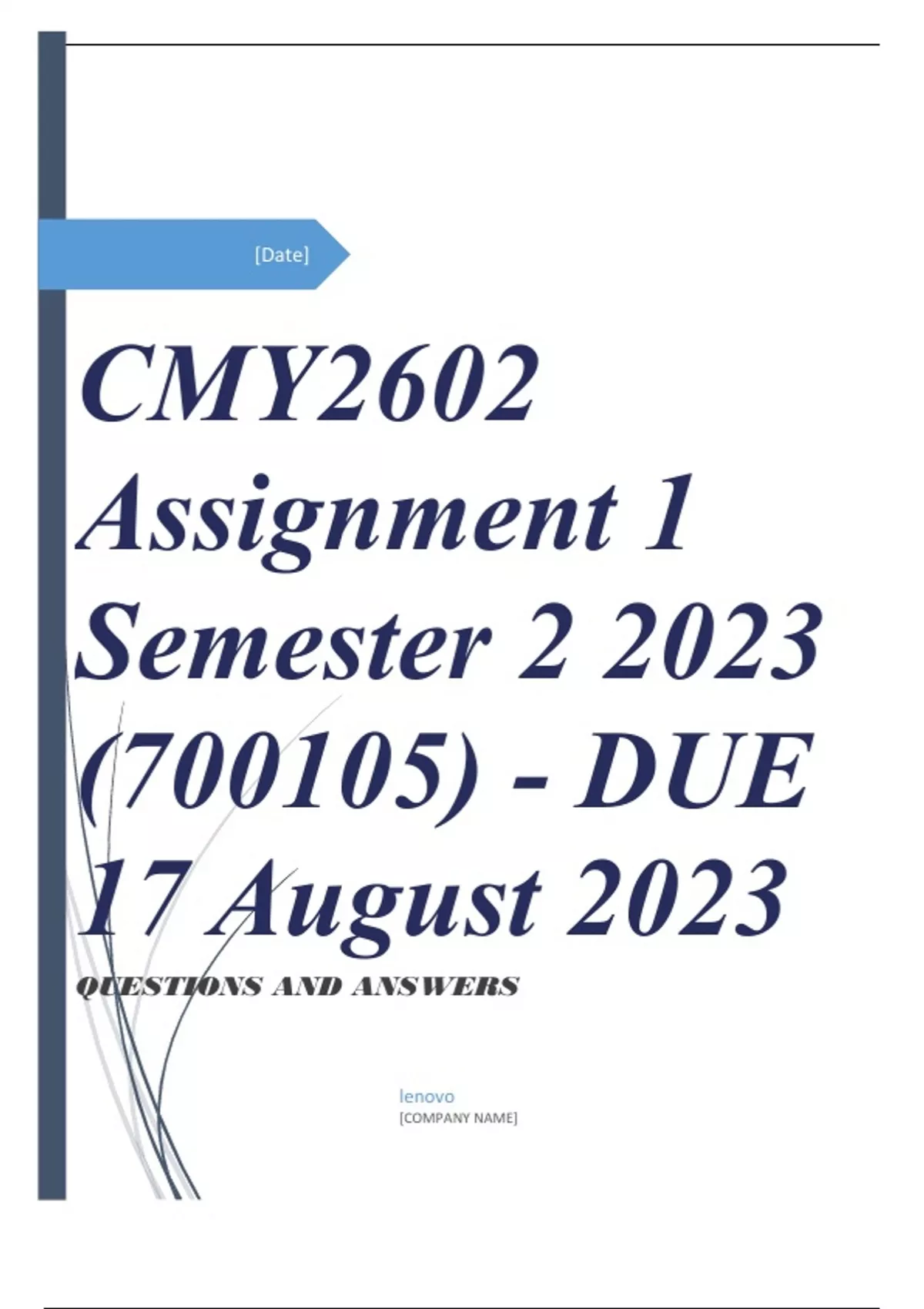, CMY2602 Assignment 1 Semester 2 2023
