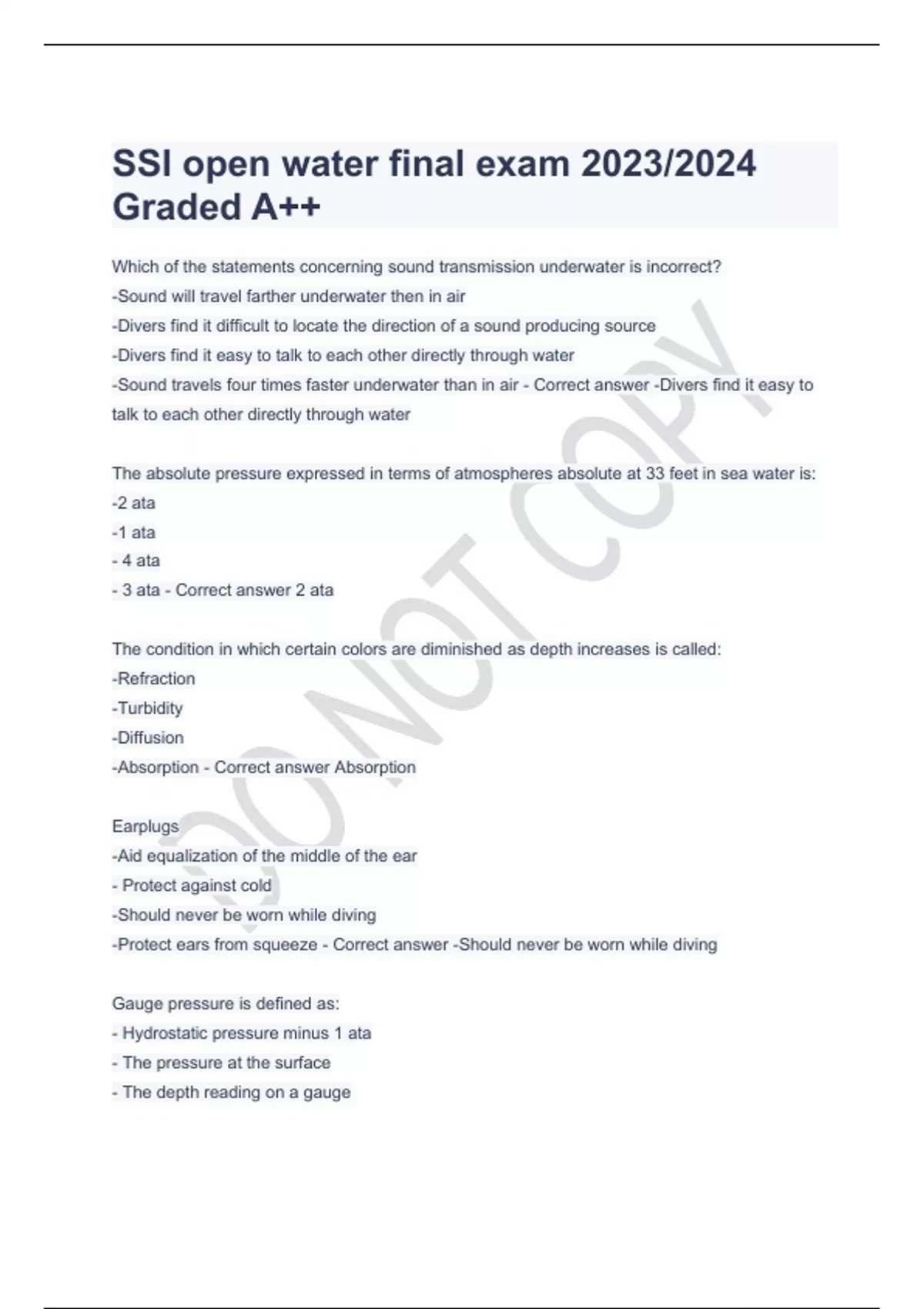 SSI open water final exam 2023/2024 Graded A++
