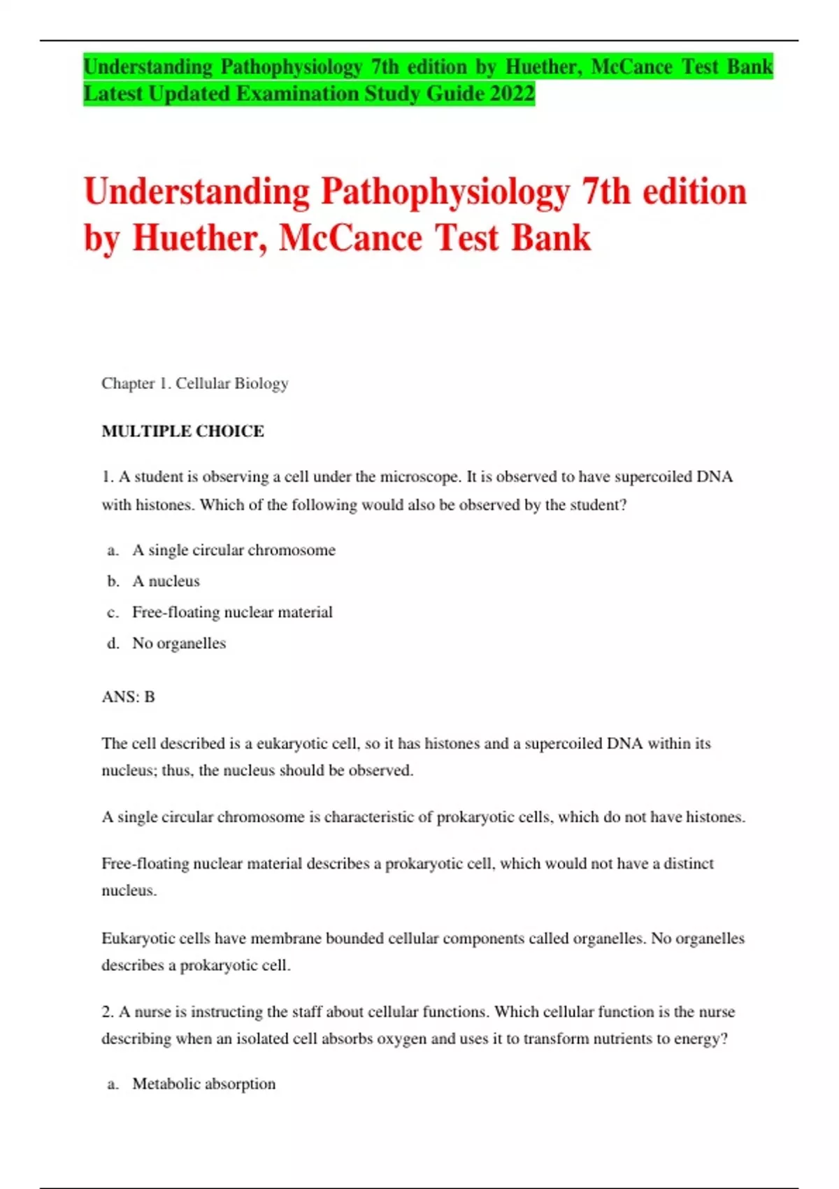 - Understanding Pathophysiology 7th Edition By Huet