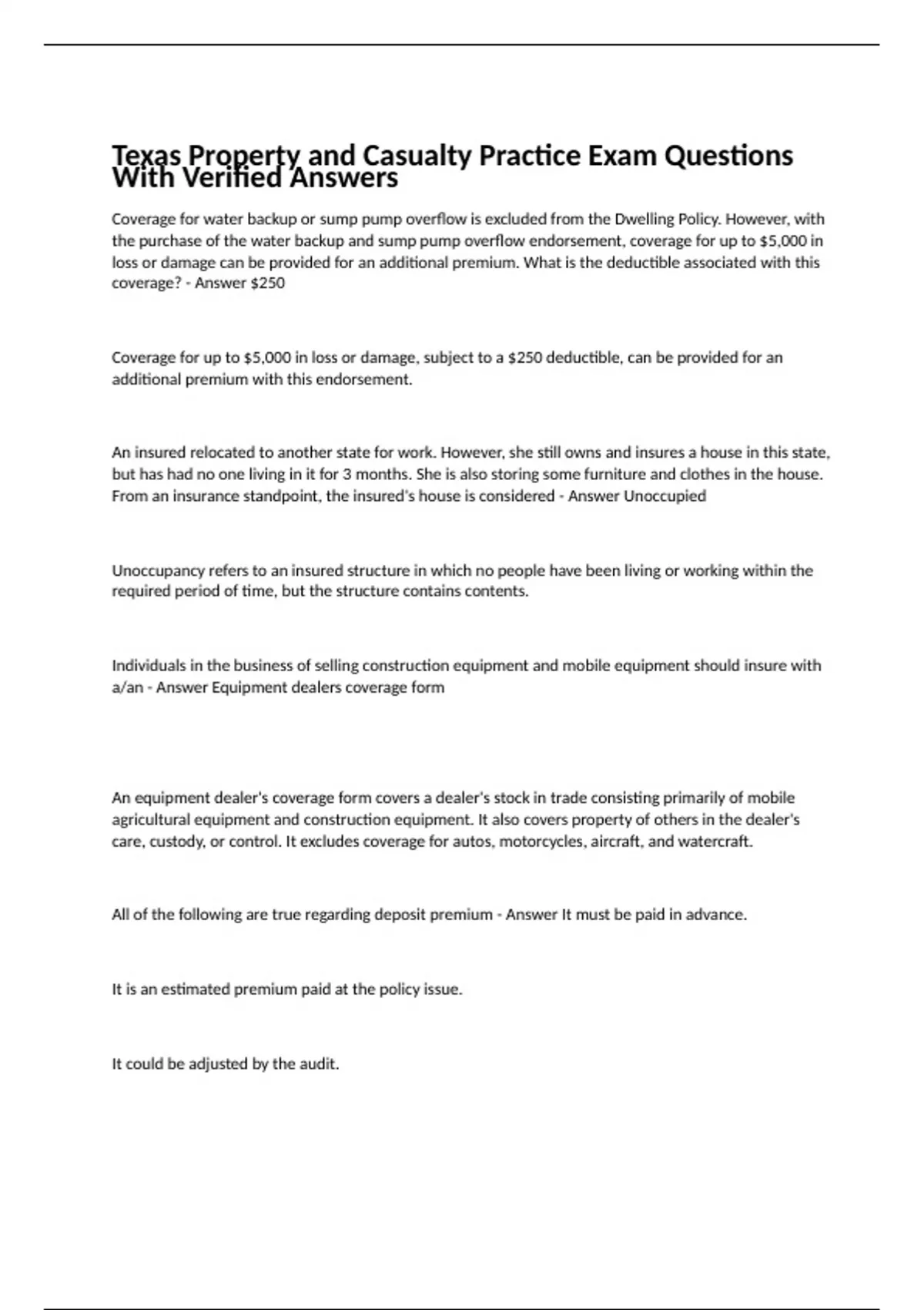 Texas Property and Casualty Practice Exam Questions With Verified Answers