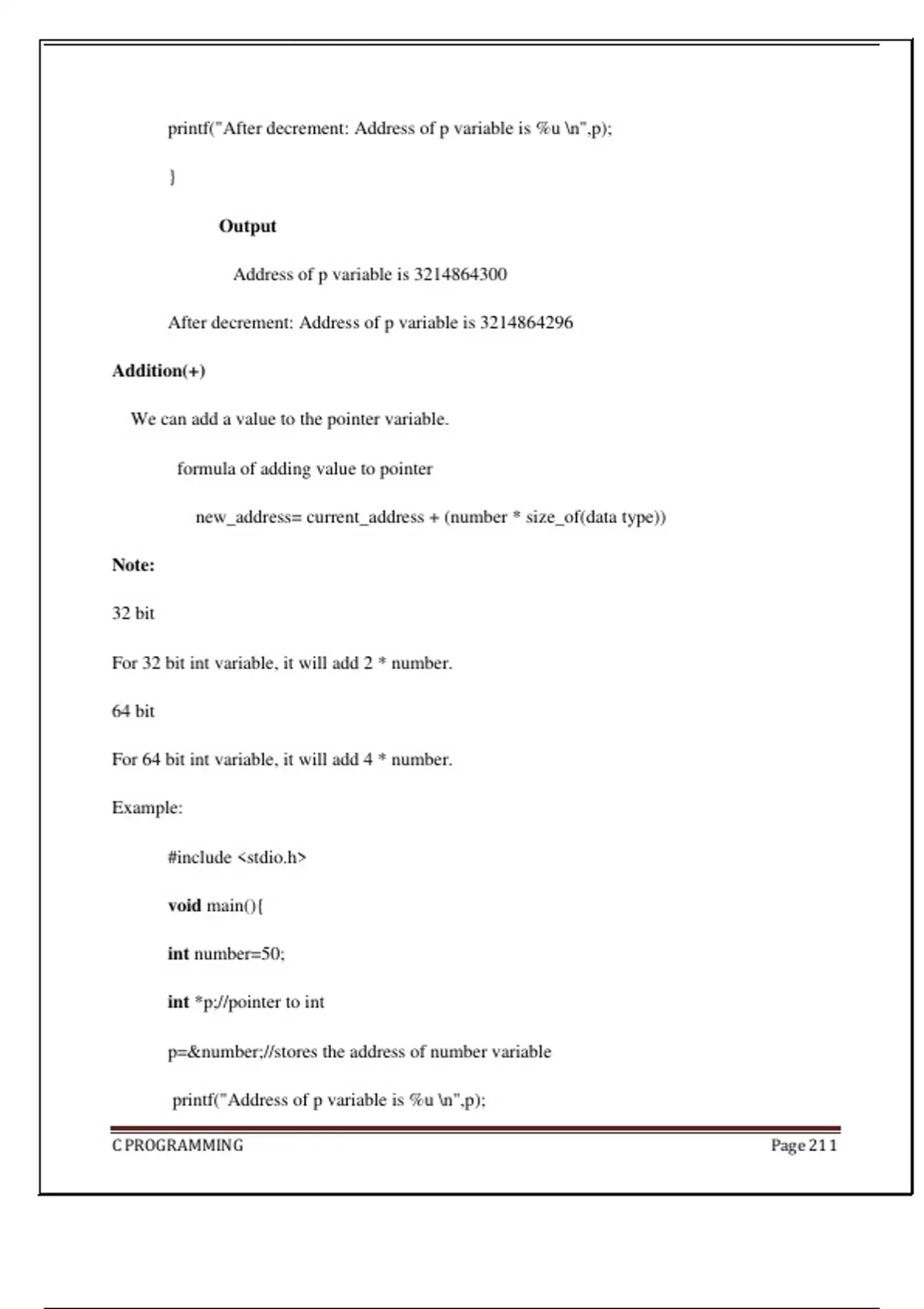 Like pointer addition, we can subtract a value from the pointer variable. The formula