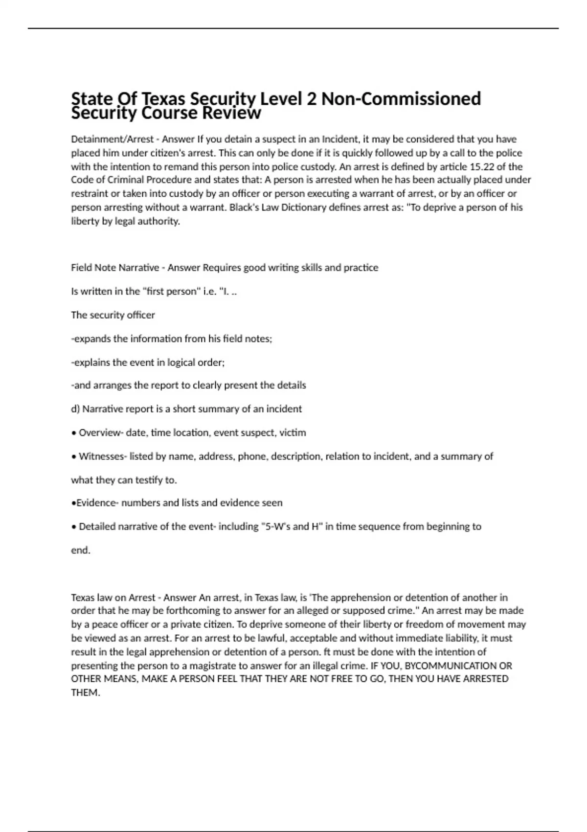 State Of Texas Security Level 2 Non-Commissioned Security Course Review