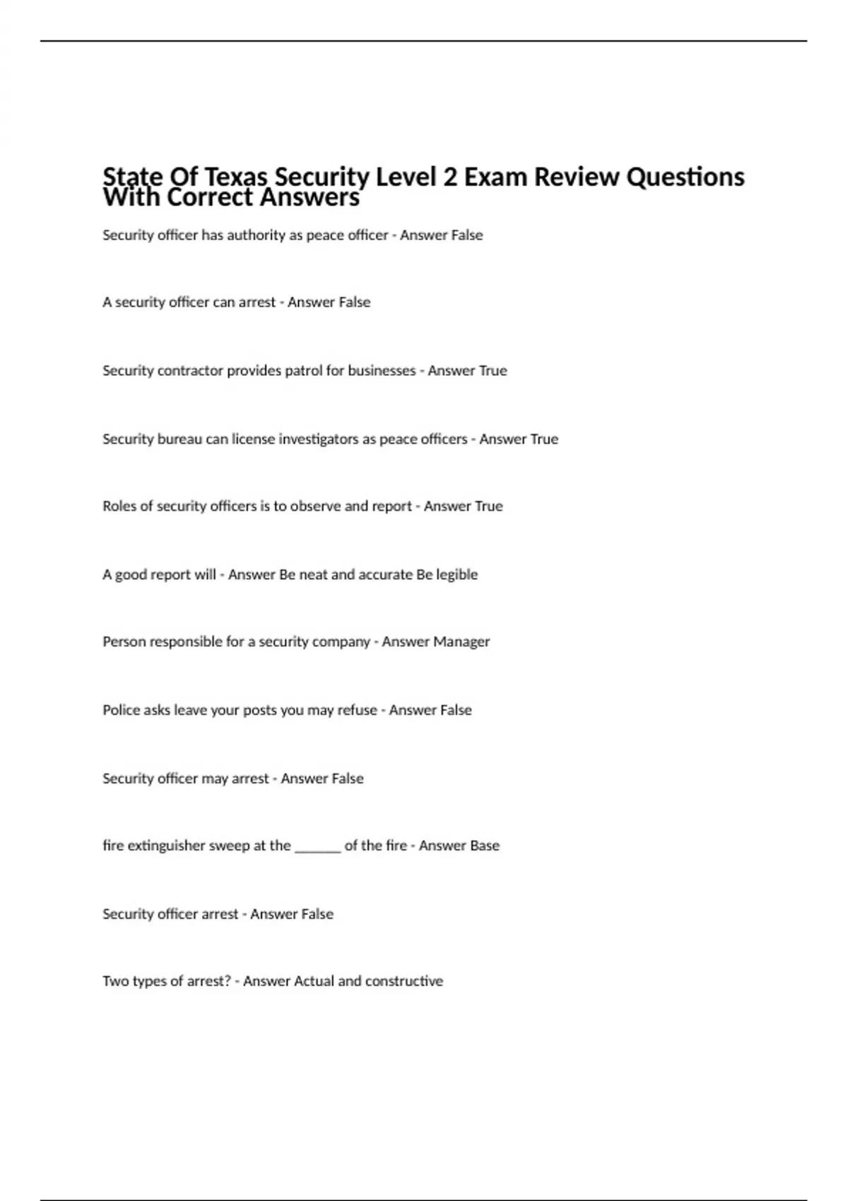 State Of Texas Security Level 2 Exam Review Questions With Correct Answers