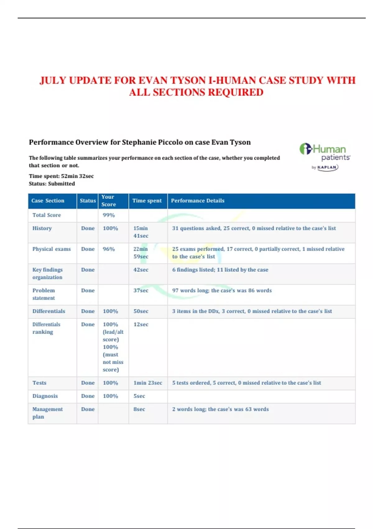 JULY UPDATE FOR EVAN TYSON I-HUMAN CASE STUDY WITH ALL SECTIONS REQUIRED
