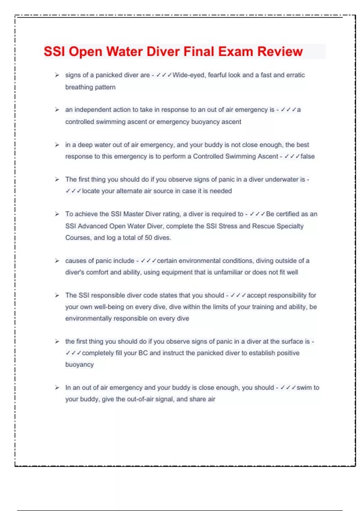 SSI Open Water Diver Final Exam ReviewSSI Open Water Diver Final Exam Review