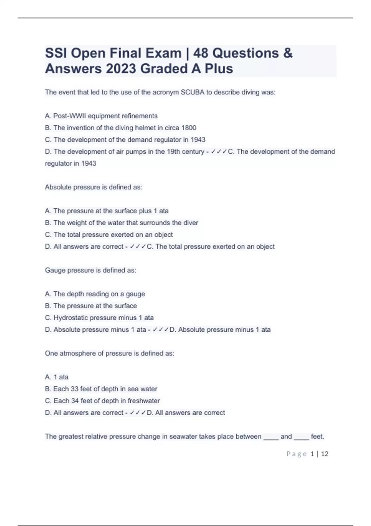 ssi open final exam | 48 questions amp answers 2023