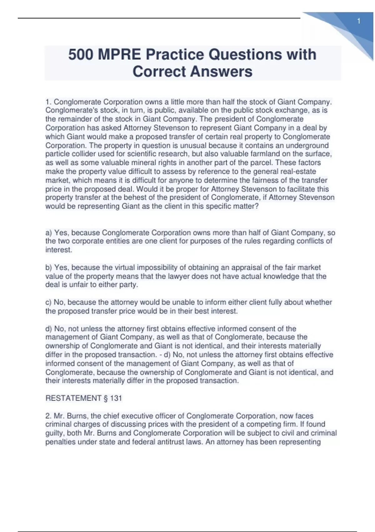 500 MPRE Practice Questions with Correct Answers 500 MPRE Practice Questions with Correct Answers 500 MPRE Practice Questions with Correct Answers