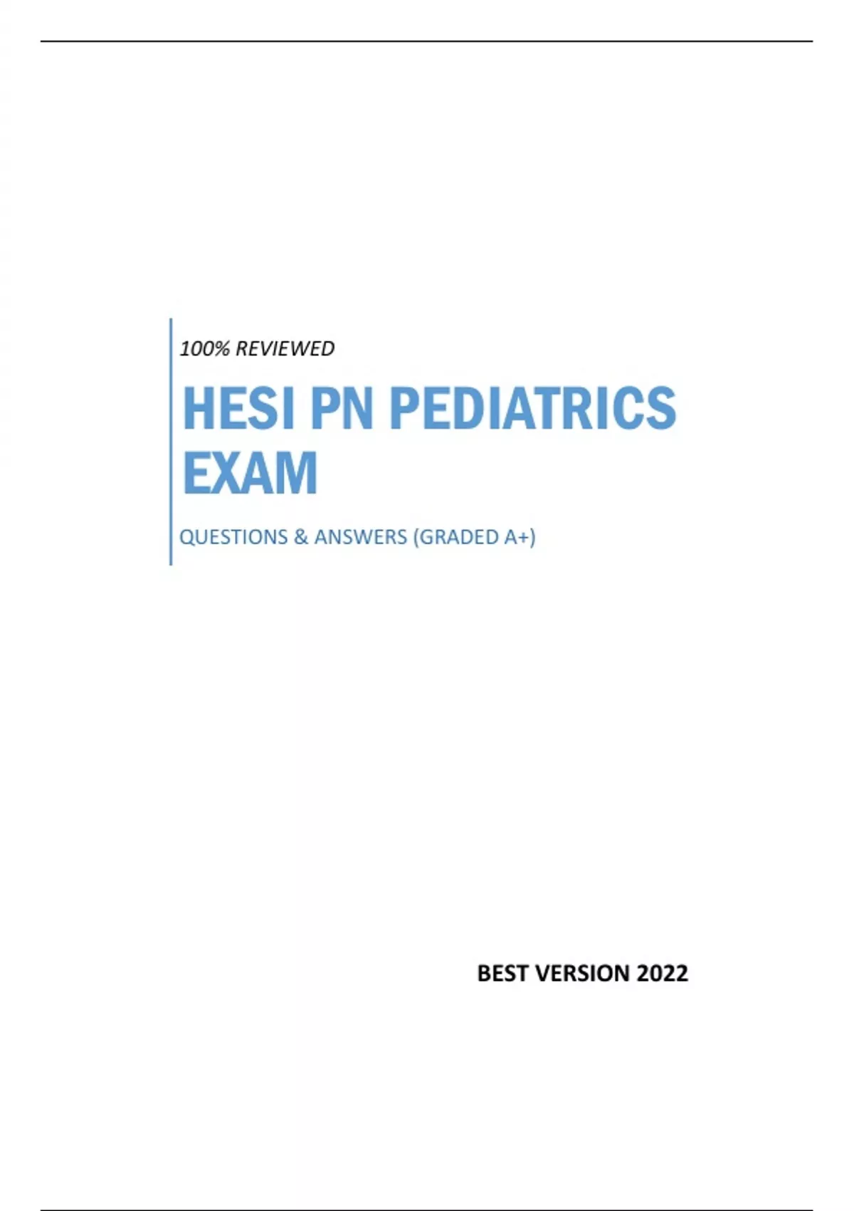 HESI PN PEDIATRICS EXAM - QUESTIONS & ANSWERS (SCORED A+) 100% REVIEWED BEST VERSION 2022