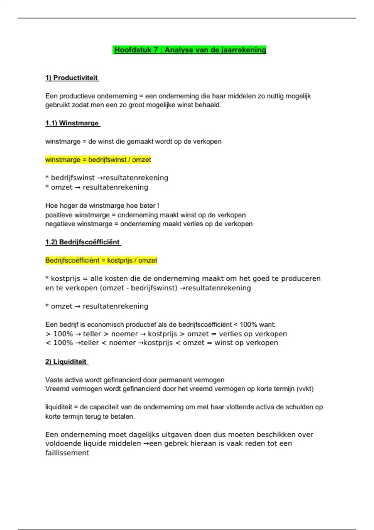 Een bedrijf is economisch productief als de bedrijfscoëfficiënt < 100% want: