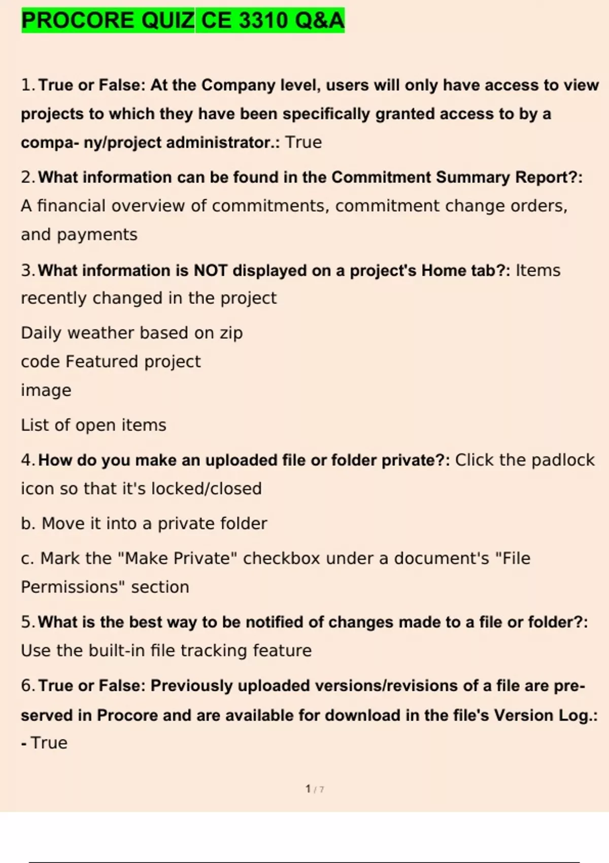 PROCORE EXAM STUDY QUIZ CE 3310 QUESTIONS AND ANSWERS GRADED A+