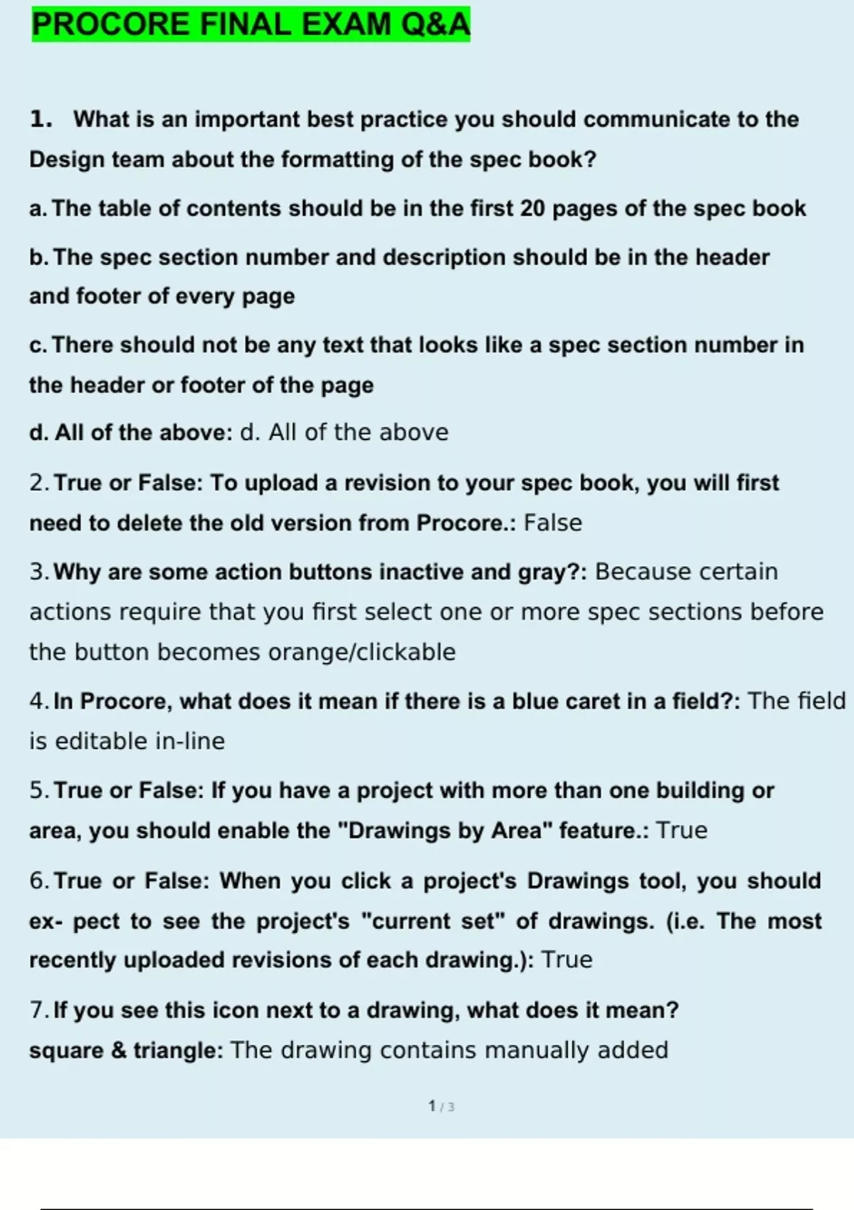 procore final exam questions and answers graded a