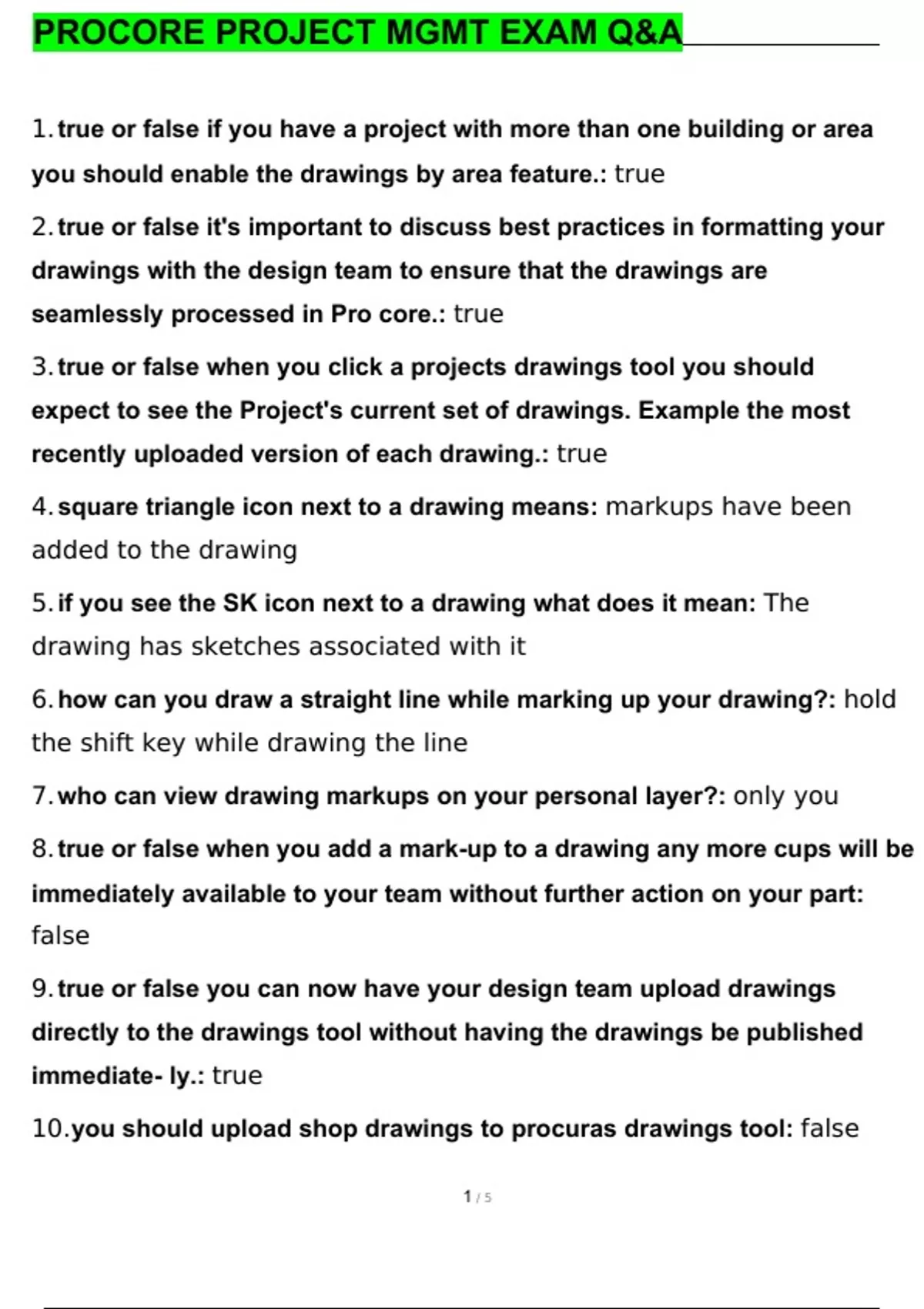 PROCORE PROJECT MGMT EXAM QUESTIONS AND ANSWERS GRADED A+