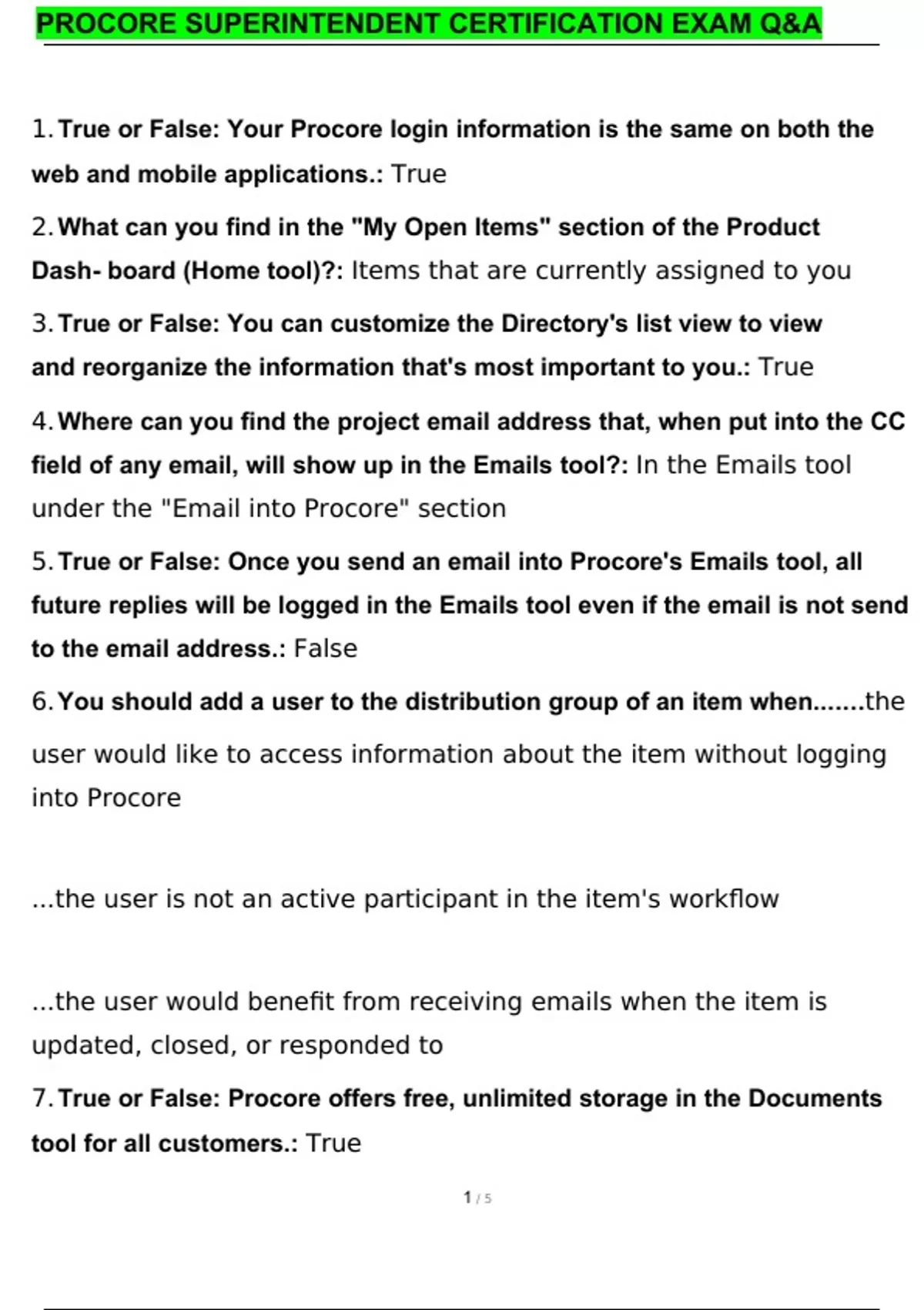PROCORE EXAM BUNDLE LATEST 100% CORRECT QUESTIONS AND ANSWERS GRADED A+